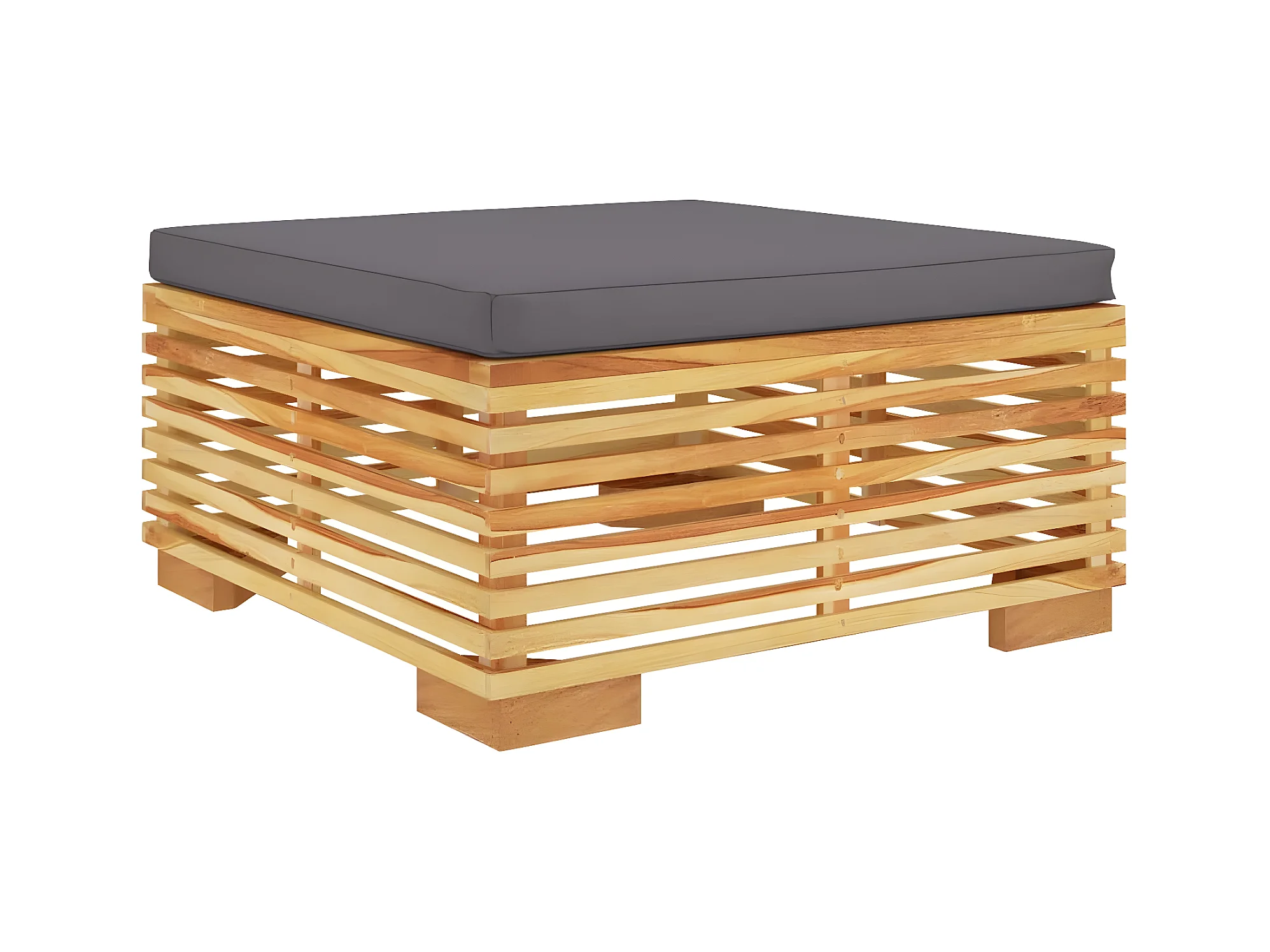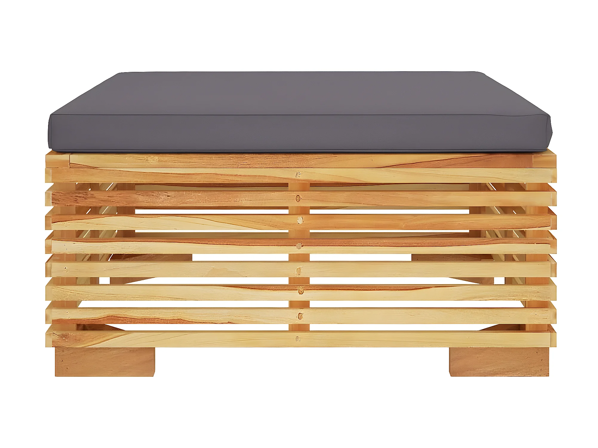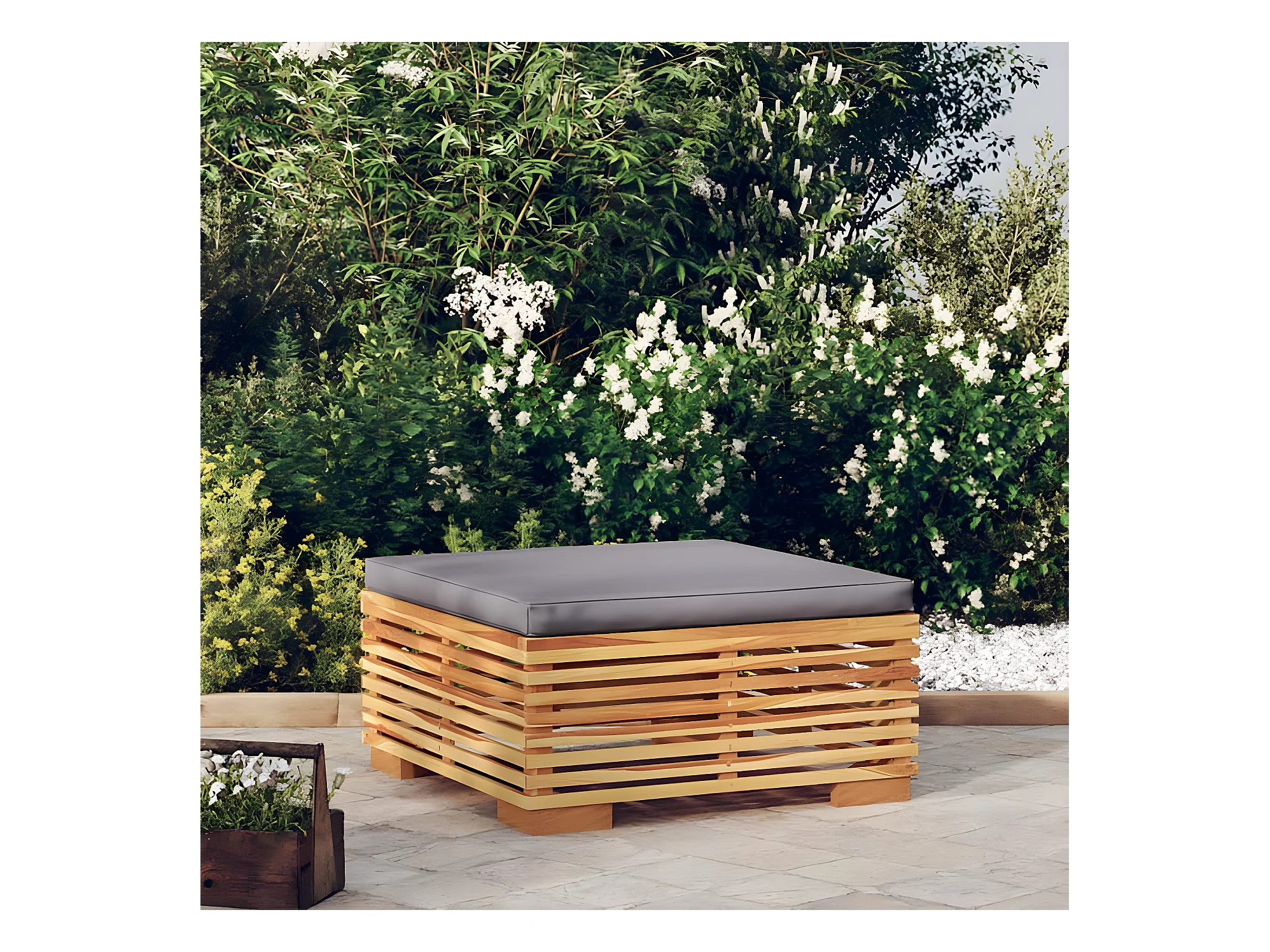 Tuinvoetenbank met donkergrijs kussen massief teakhout NL313907
