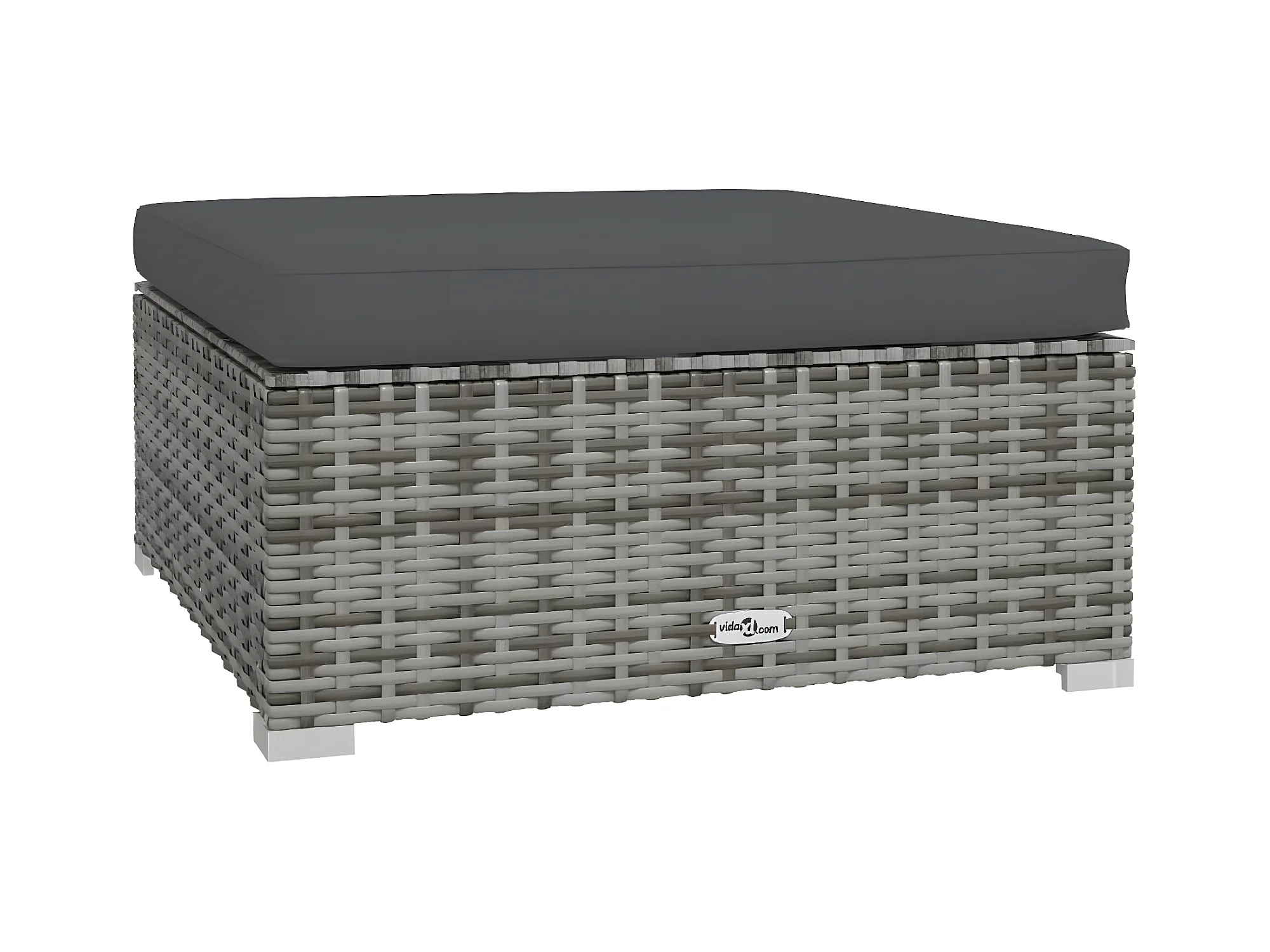 Tuinvoetenbank met kussen 70x70x30 cm poly rattan grijs NL155218