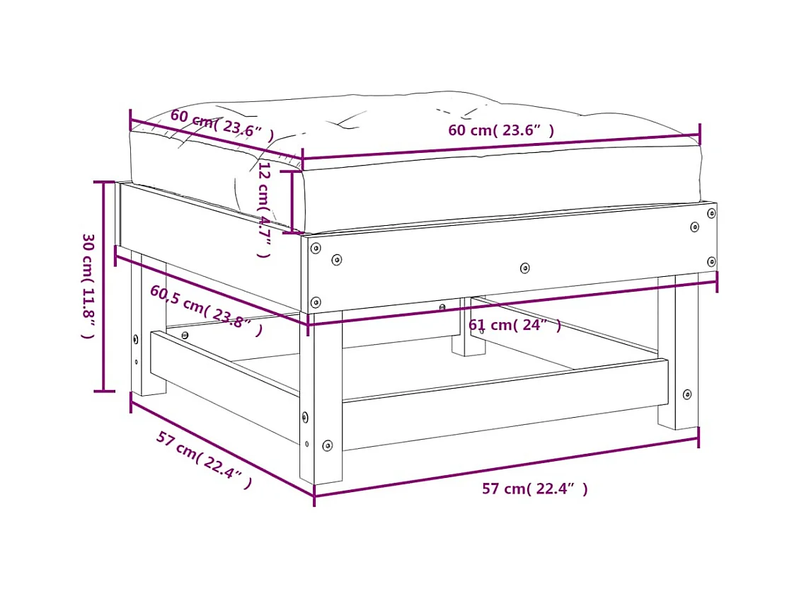Tuinvoetenbank 120x80 cm massief grenenhout