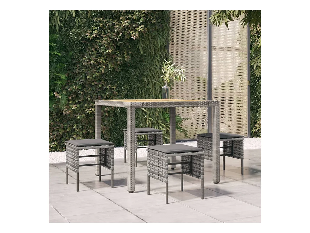Tuinvoetenbanken 4 st met kussens poly rattan grijs NL101282