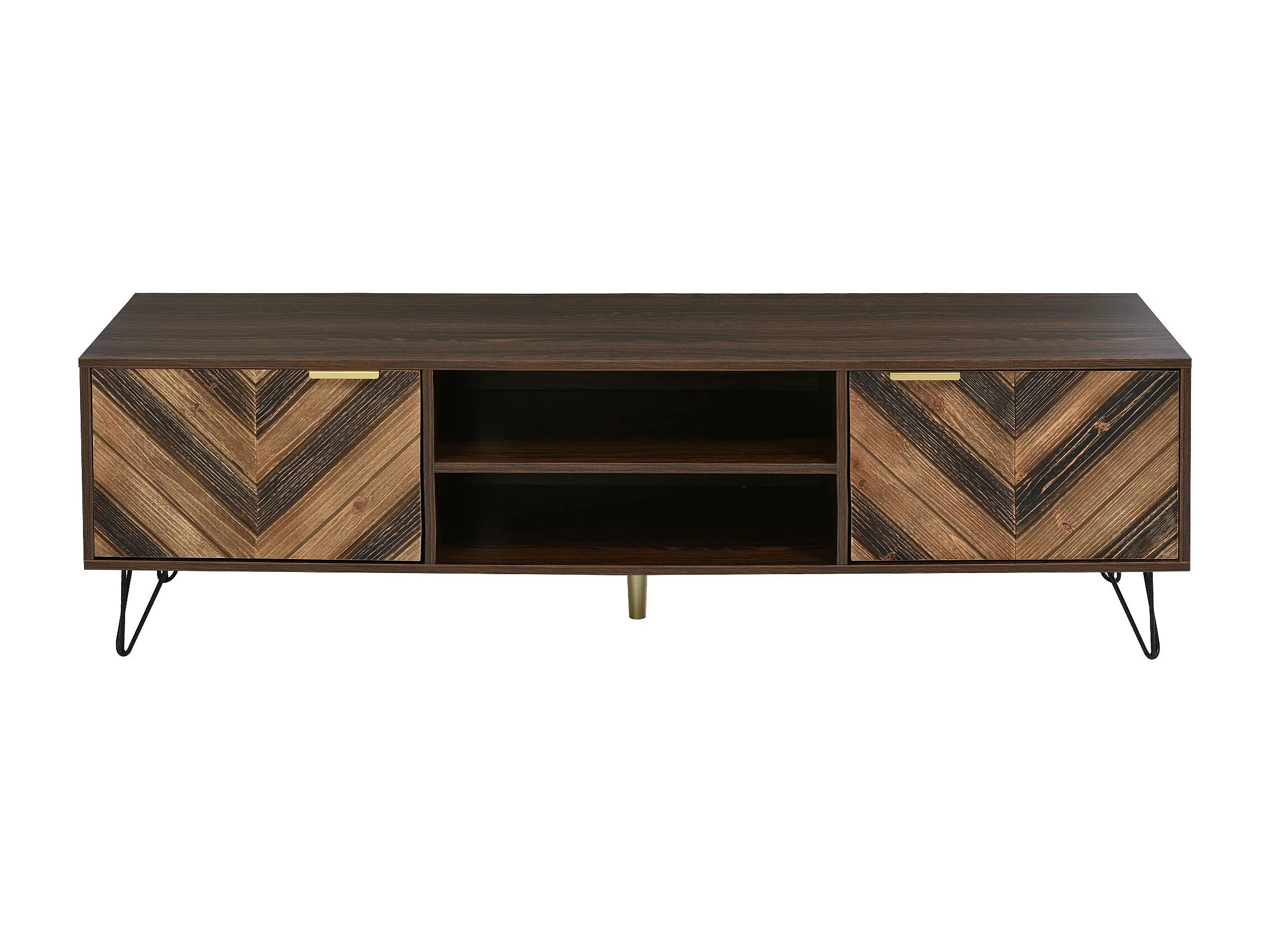 TV kast 155x38x48cm met twee deuren twee compartimenten en gouden handgrepen brengen Materiaal Spaanplaat in Natuurlijke kleur