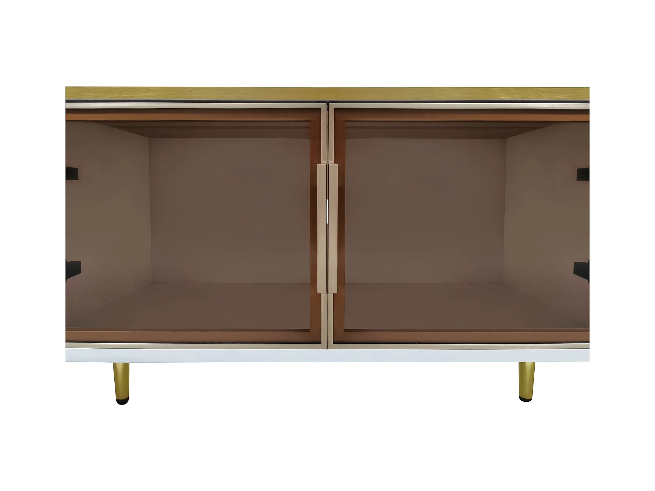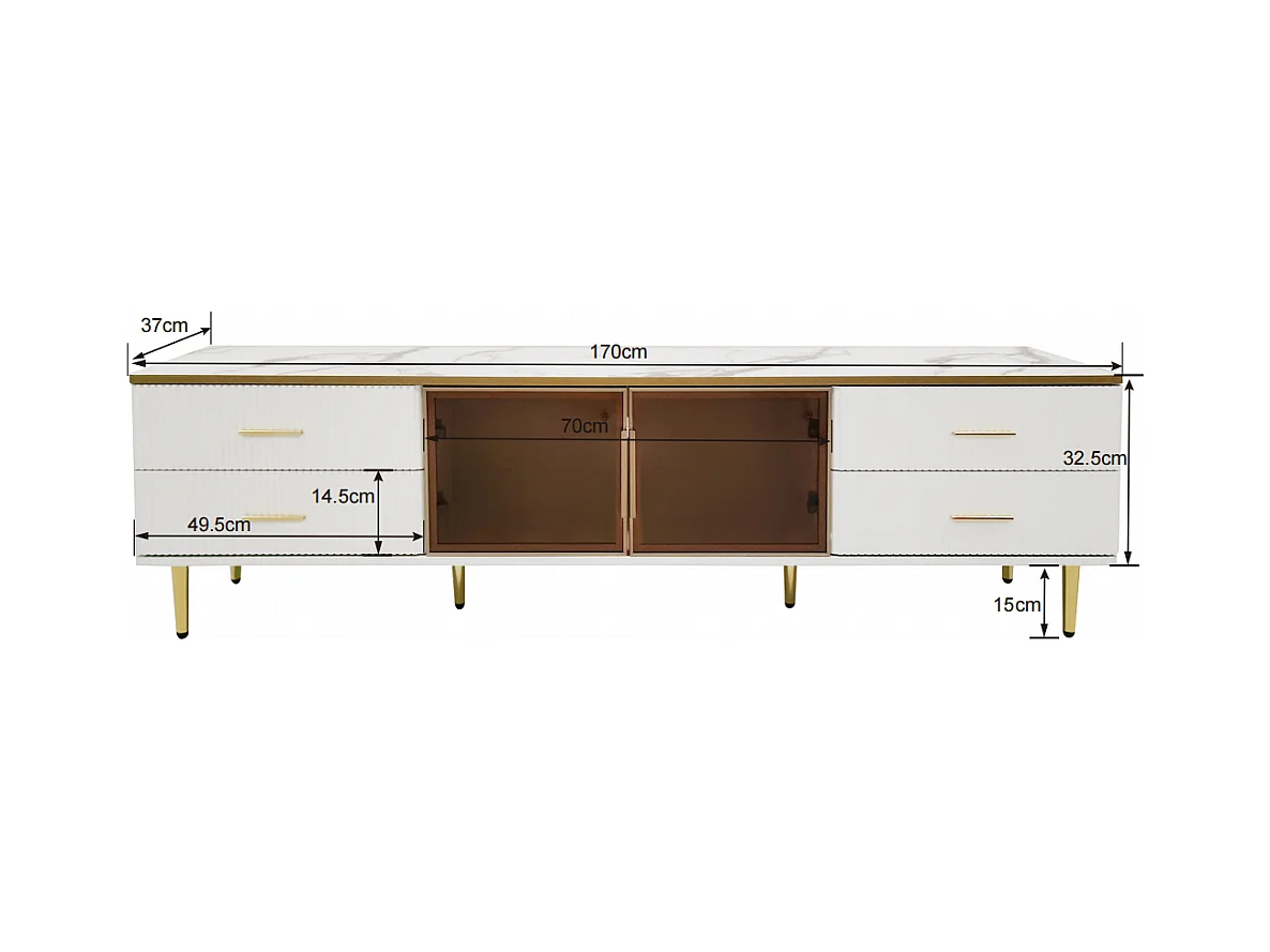 TV kast 170x37x47.5cm met vier laden twee deuren dimmbare LED verlichting en gouden handgrepen brengen Materiaal Spaanplaat en Wit