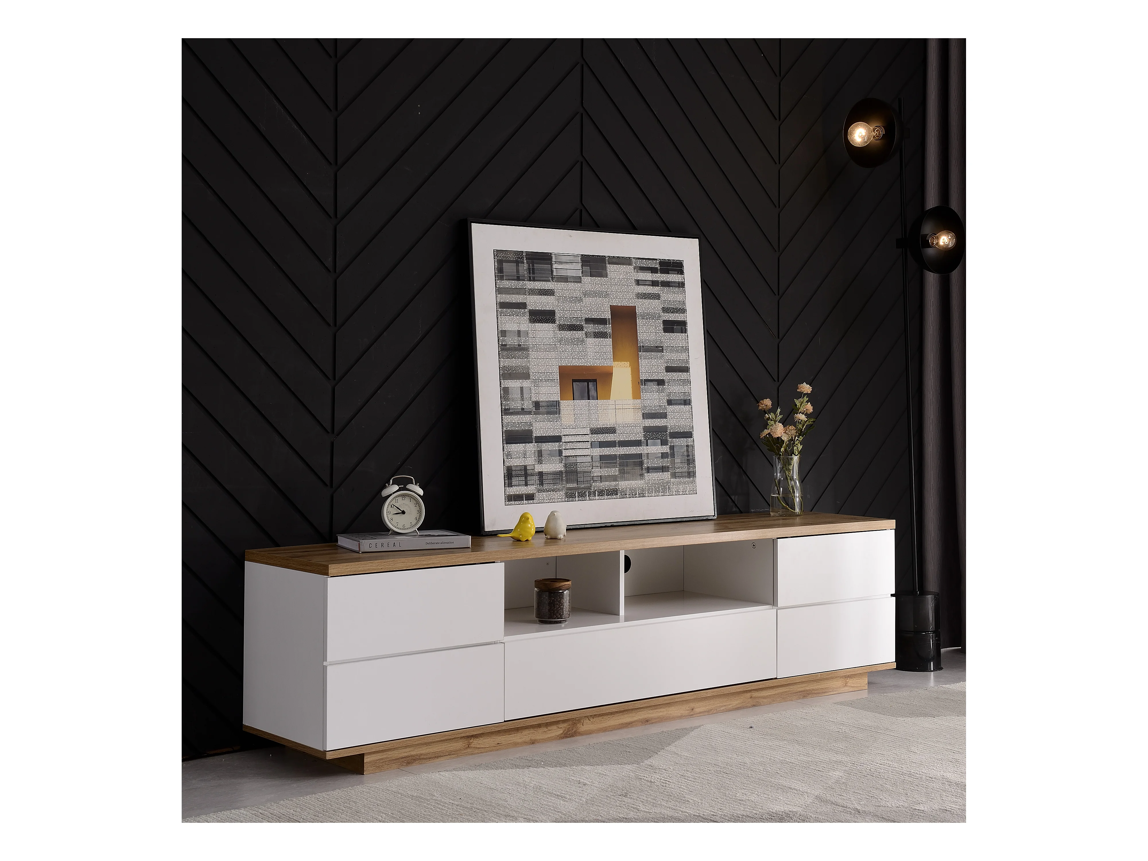 TV kast 180x38x46cm met verborgen handgrepen 5 deuren en 2 open MDF plankken brengen Materiaal MDF Wit