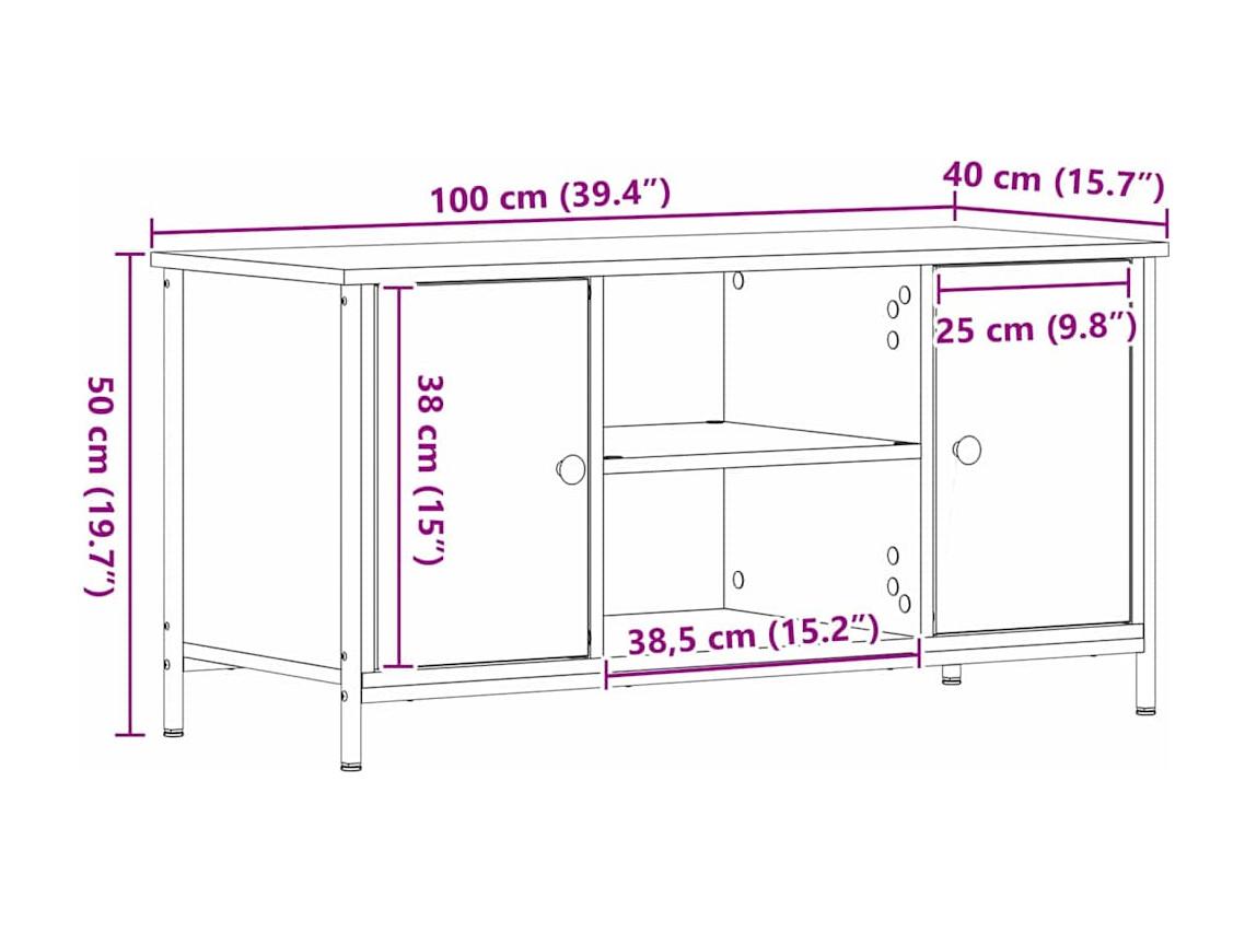 TV Kast artisanaal eikenkleurig 100 x 40 x 50 cm Bewerkt hout