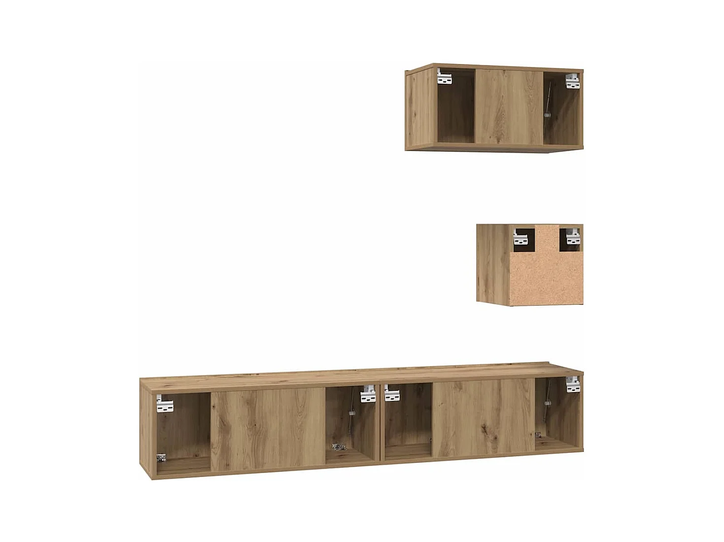 TV-kastset 4-delig handgemaakt eikenhout 80 x 30 x 30 cm