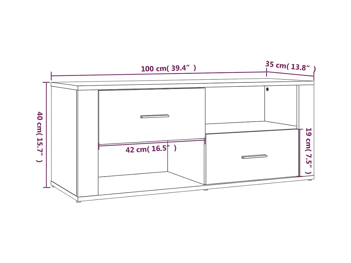 Tv-meubel 102x35x36,5 cm bewerkt hout grijs sonoma eikenkleurig
