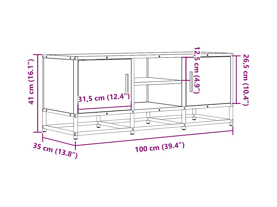 Tv-meubel 100x35x41 cm bewerkt hout metaal grijs sonoma eiken