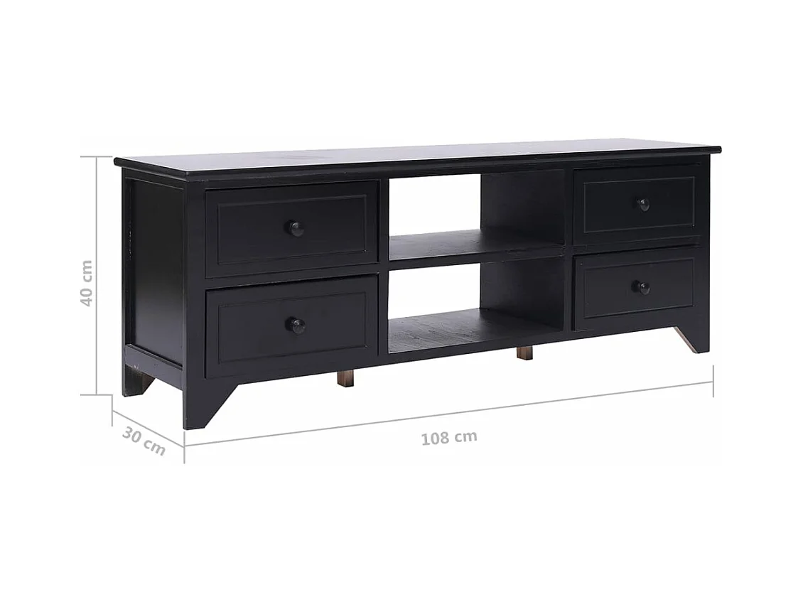 Tv-meubel 108x30x40 cm massief paulowniahout zwart NL930498