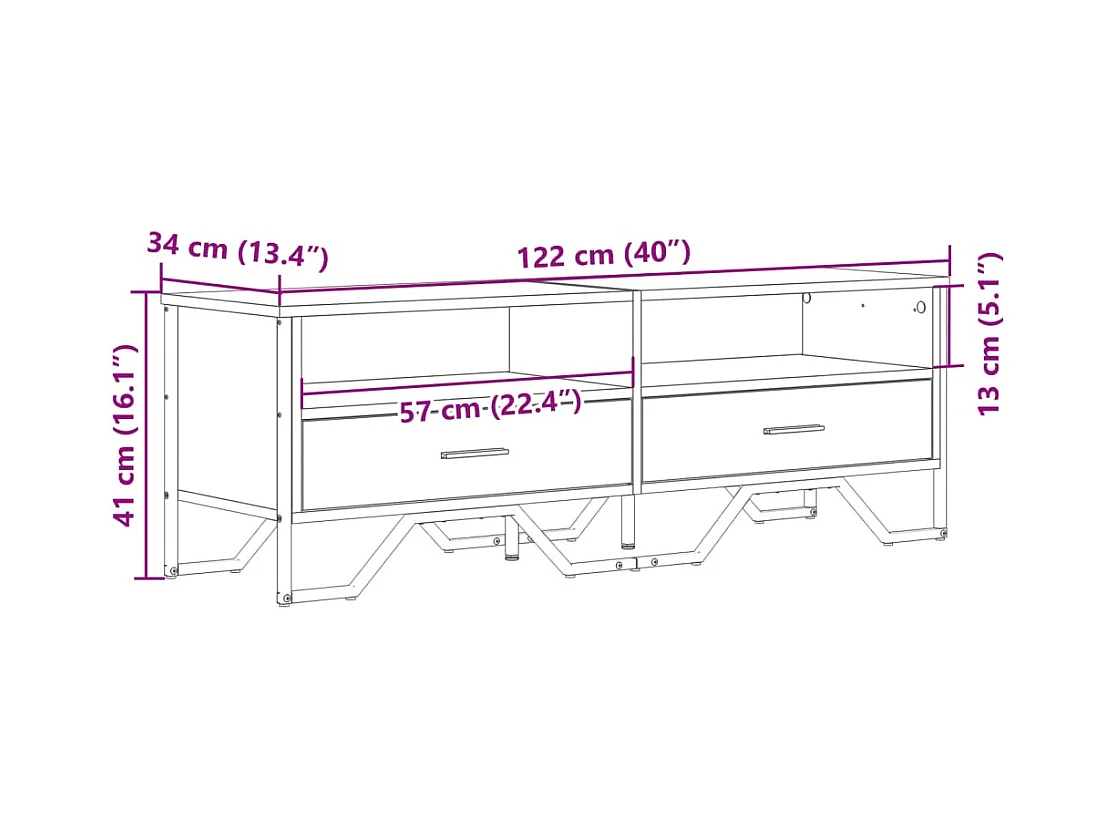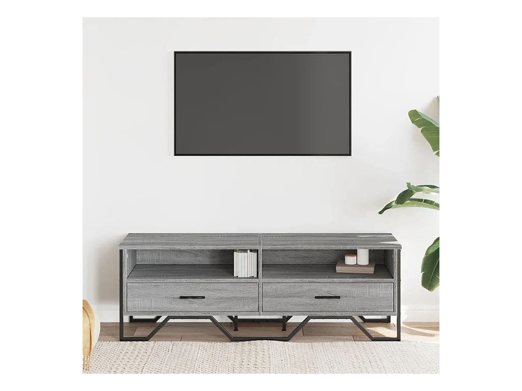 Tv-meubel 100x35x41 cm bewerkt hout metaal grijs sonoma eiken