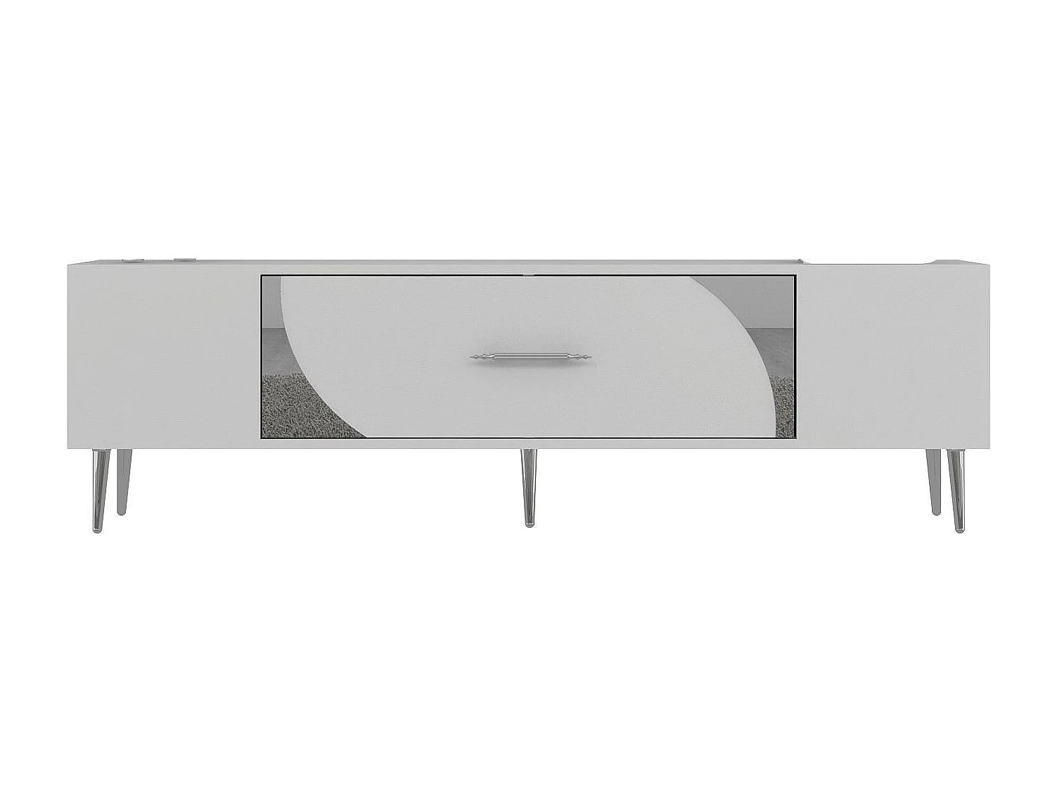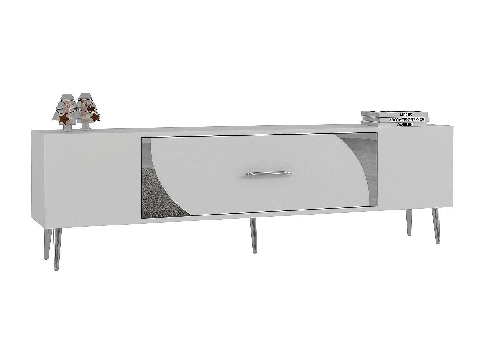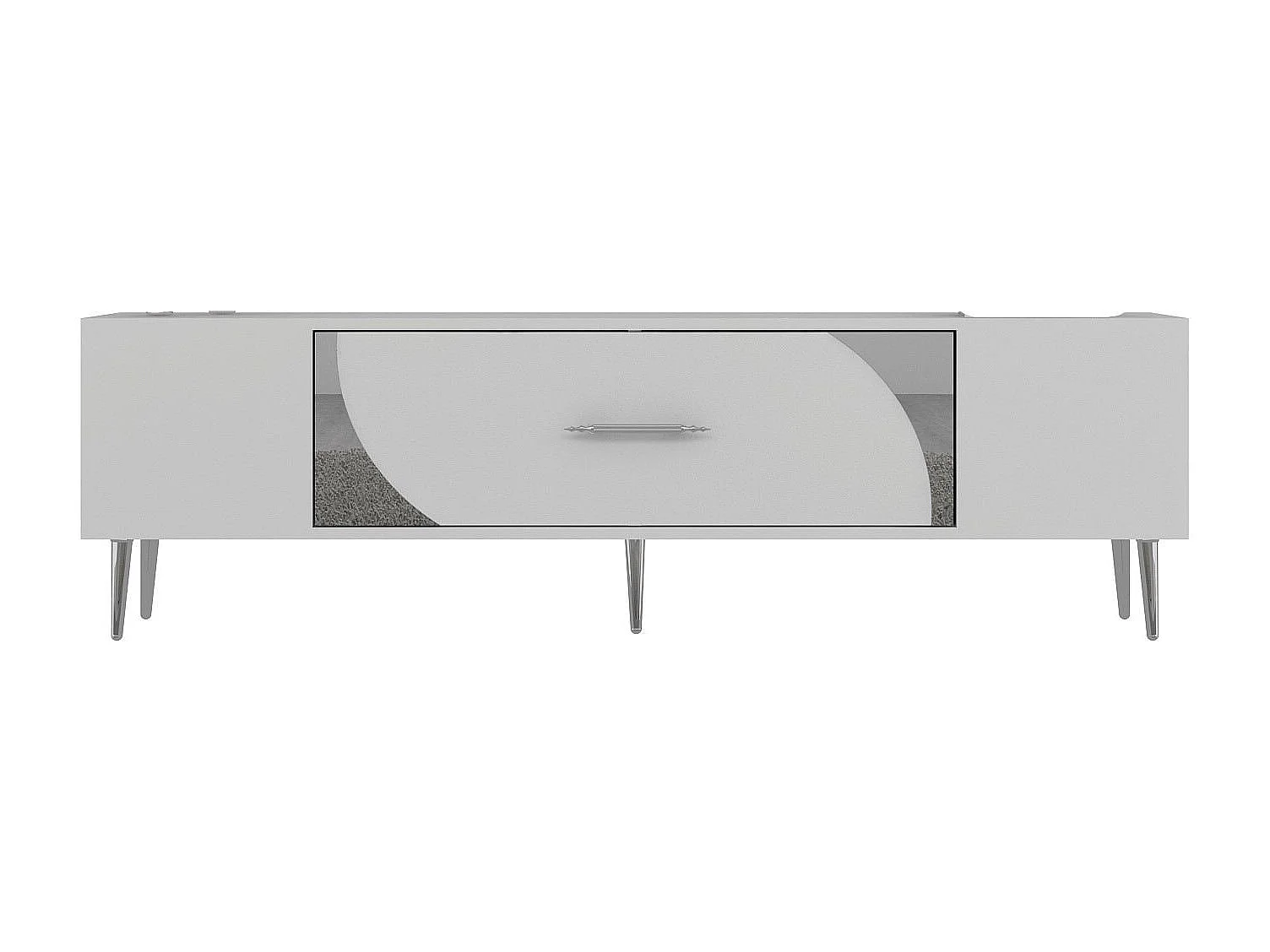 TV-meubel – 150 cm x 48,2 cm x 29,6 cm – Wit en zilver – Melamine gecoat spaanplaat
