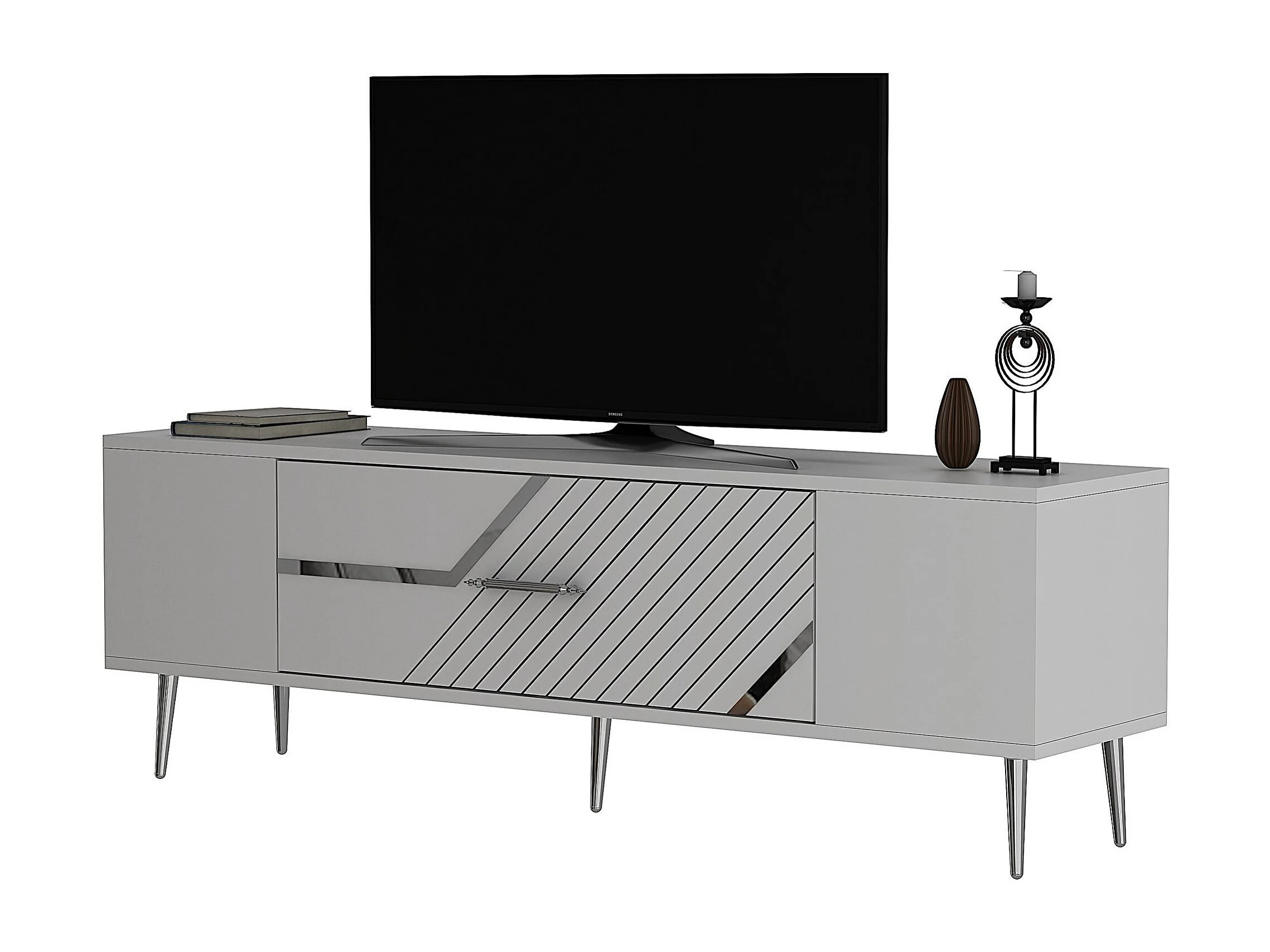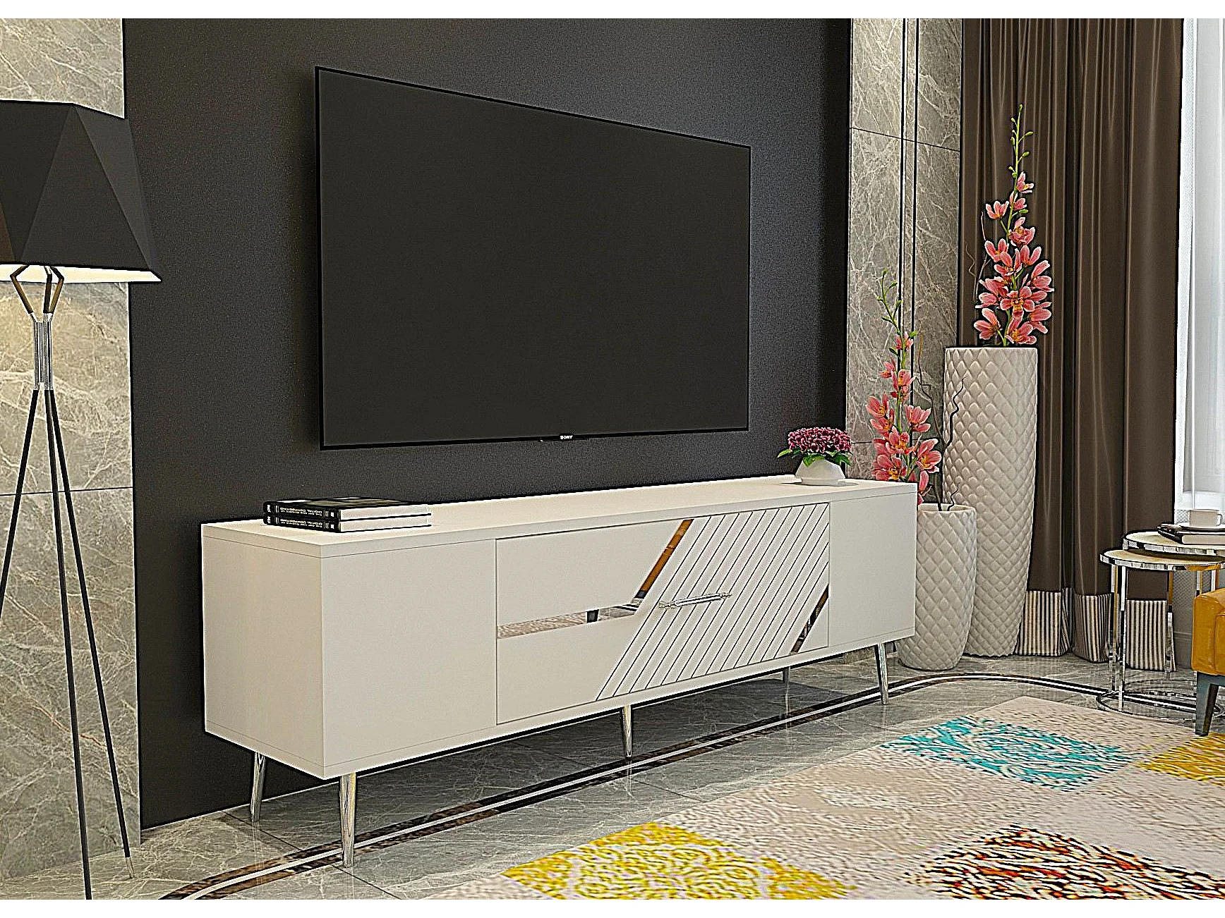 TV-meubel – 150 cm x 48,2 cm x 29,6 cm – Wit en zilver – Melamine gecoat spaanplaat