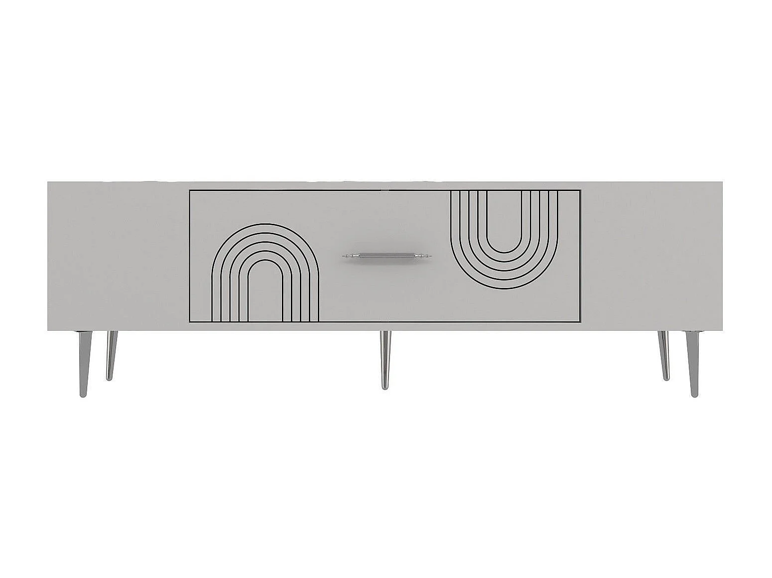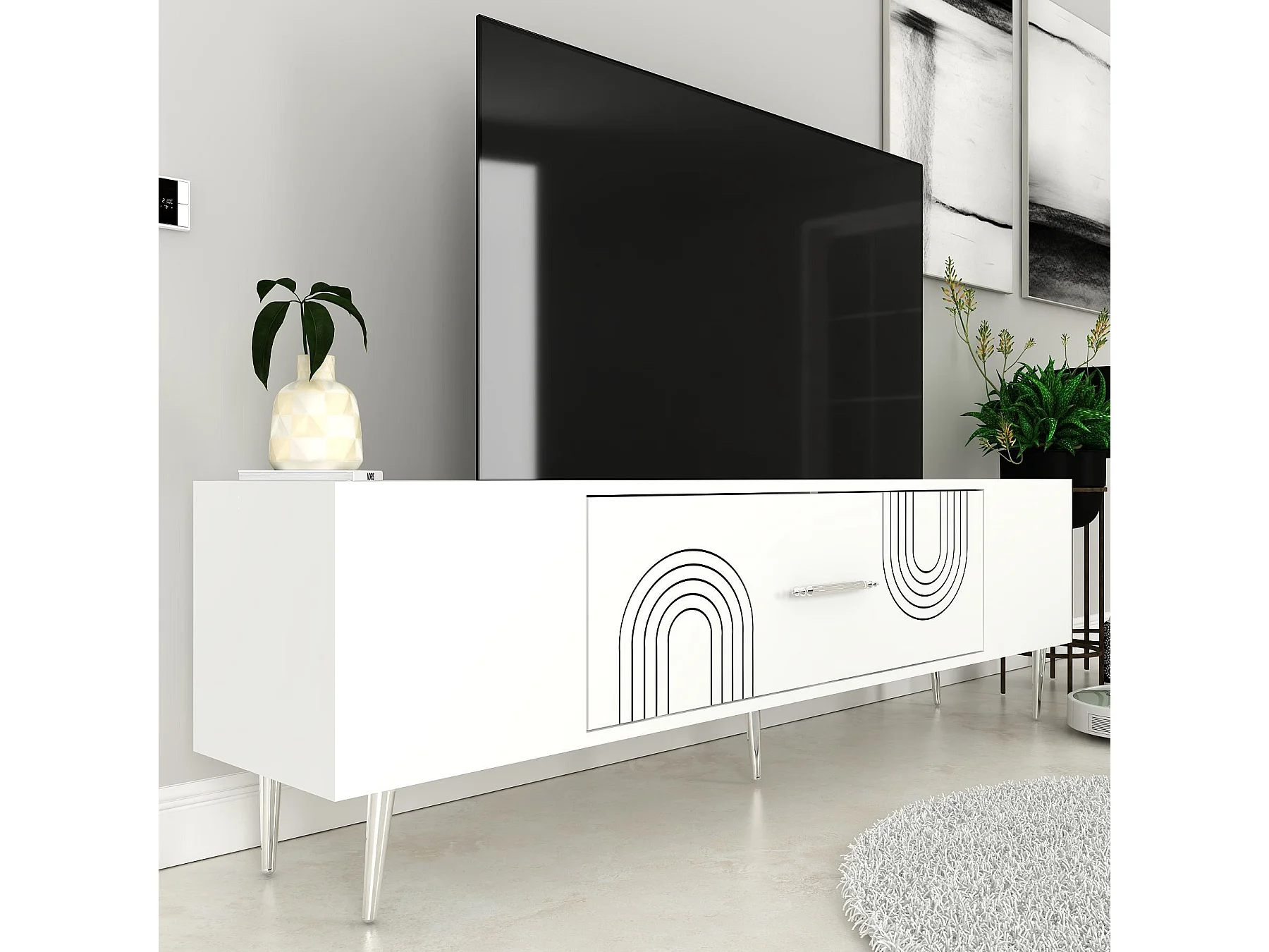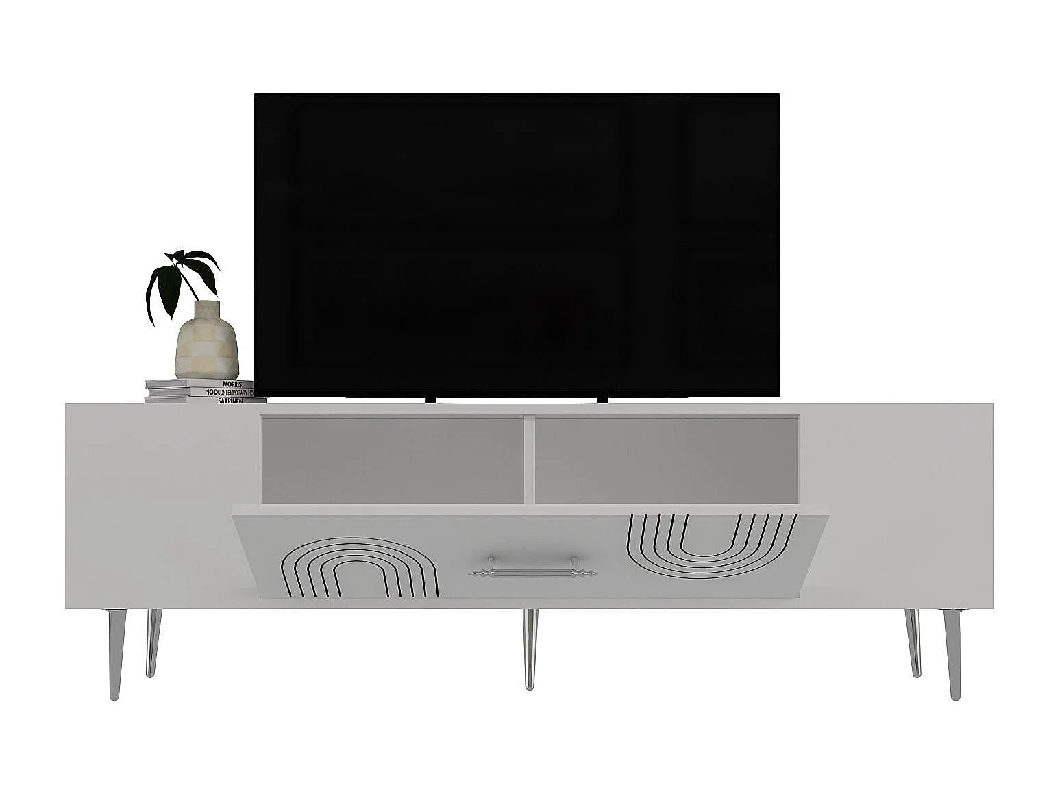 TV-meubel – 150 cm x 48,2 cm x 29,6 cm – Wit en zilver – Melamine gecoat spaanplaat