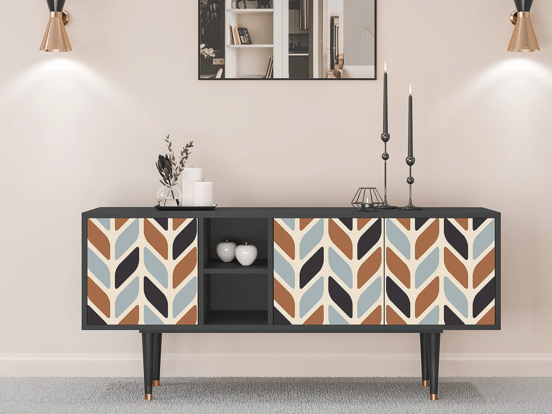TV-meubel - 150х69х41 cm - T5 - Beige Laure, Antraciet