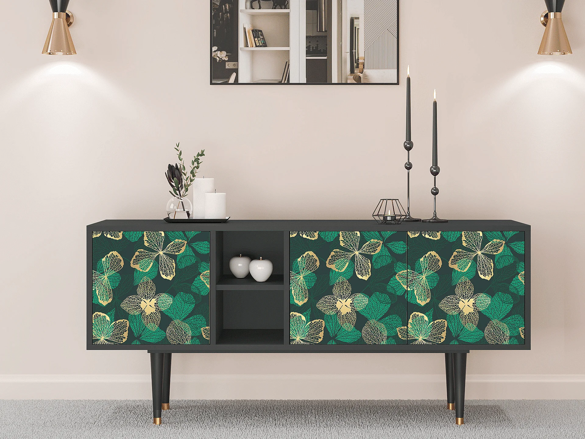 TV-meubel - 150х69х41 cm - T5 - Green Flower, Antraciet