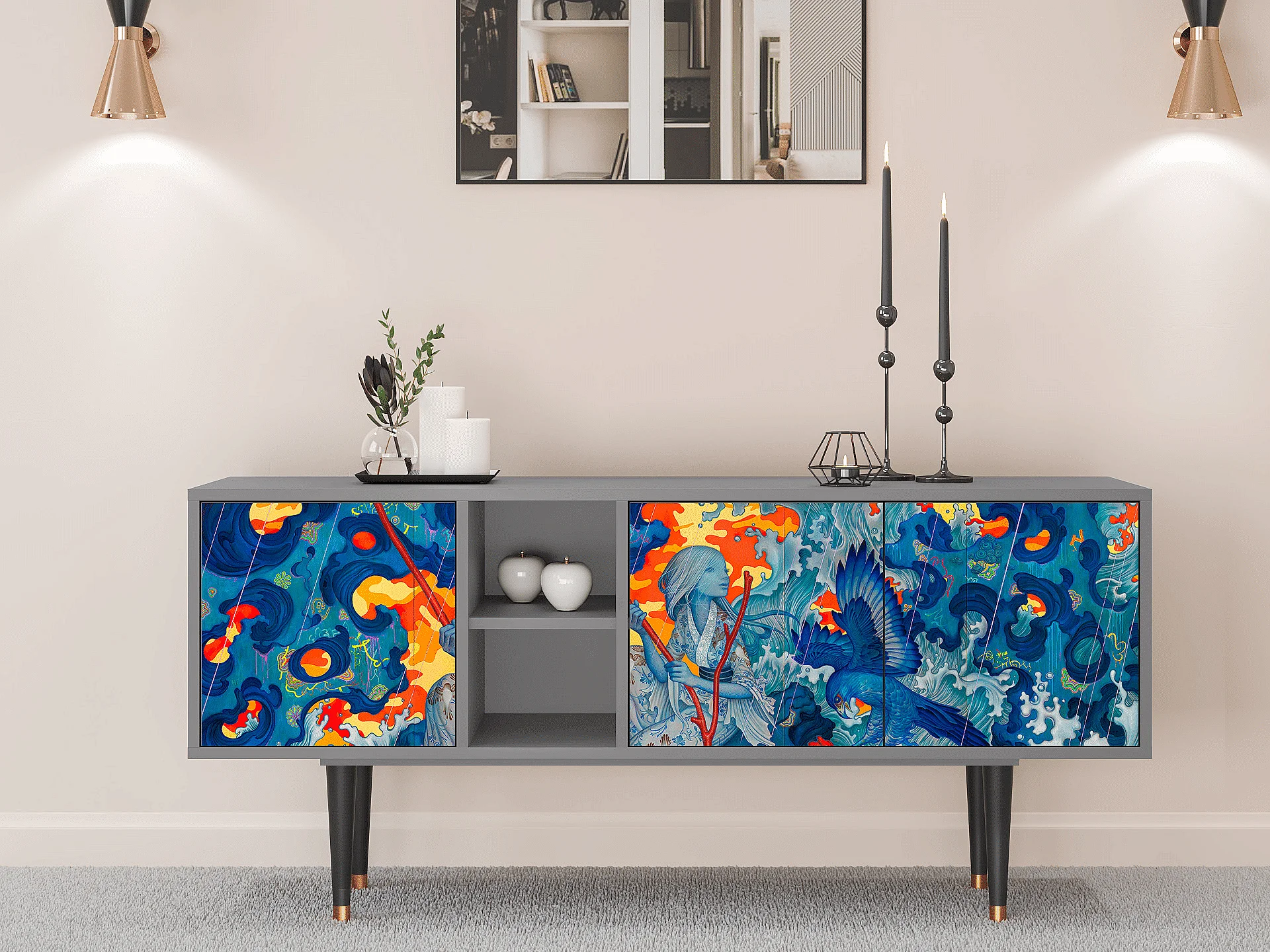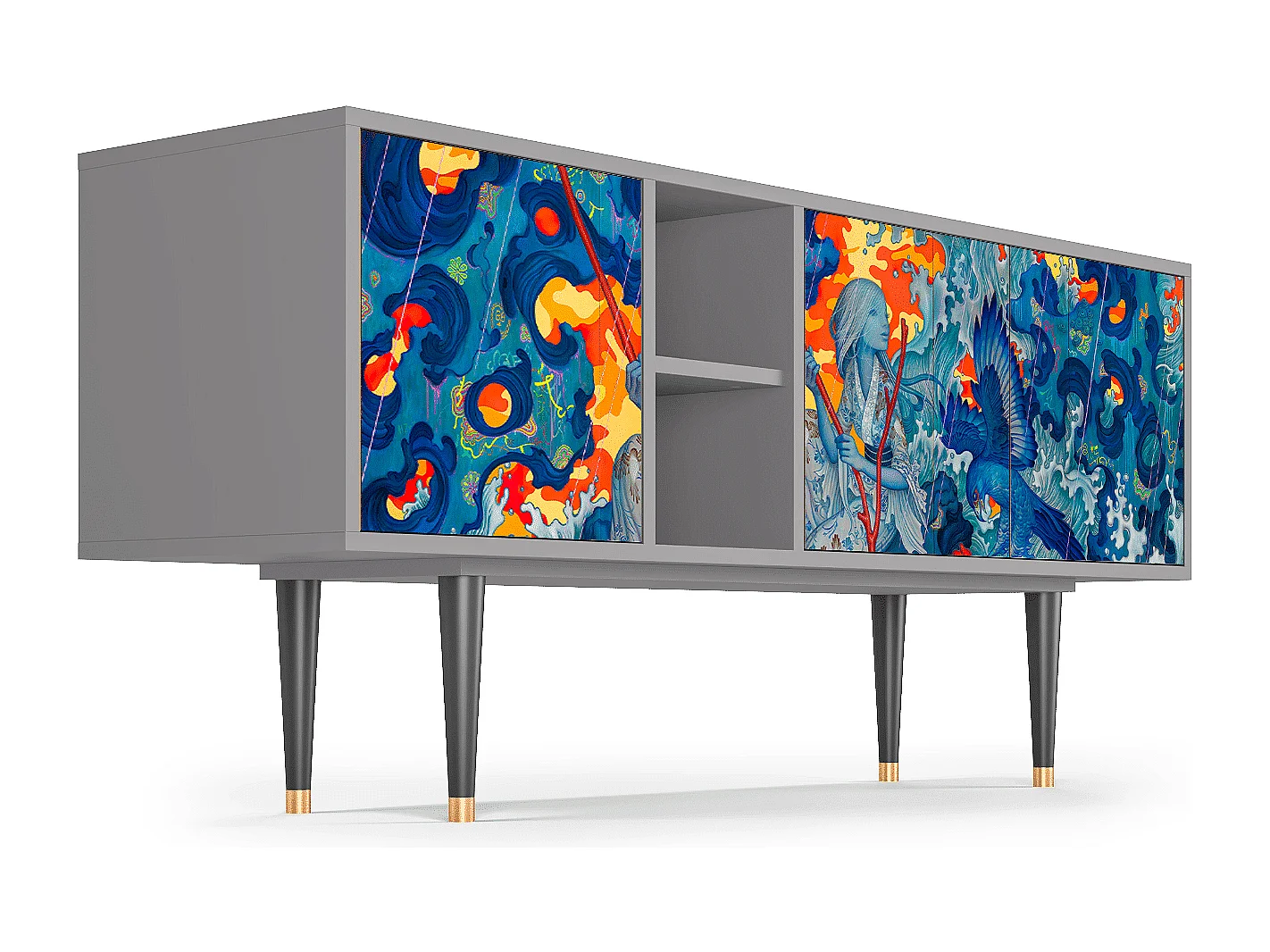TV-meubel - 150х69х41 cm - T5 - The Girl - James Jean, Grijs