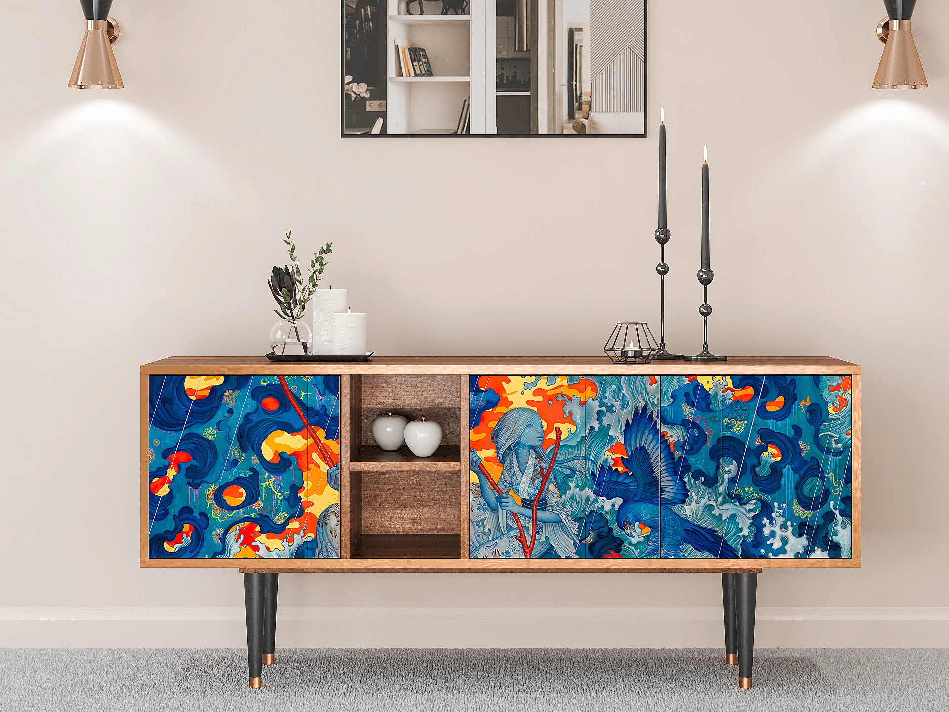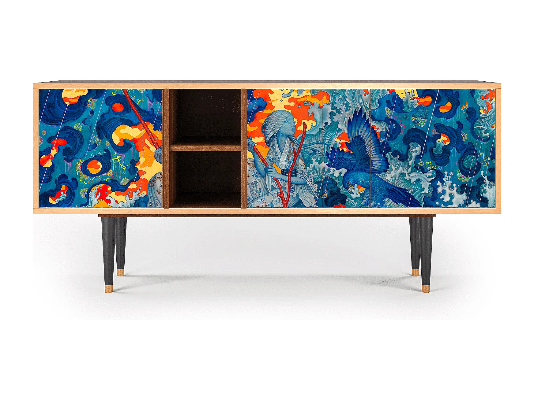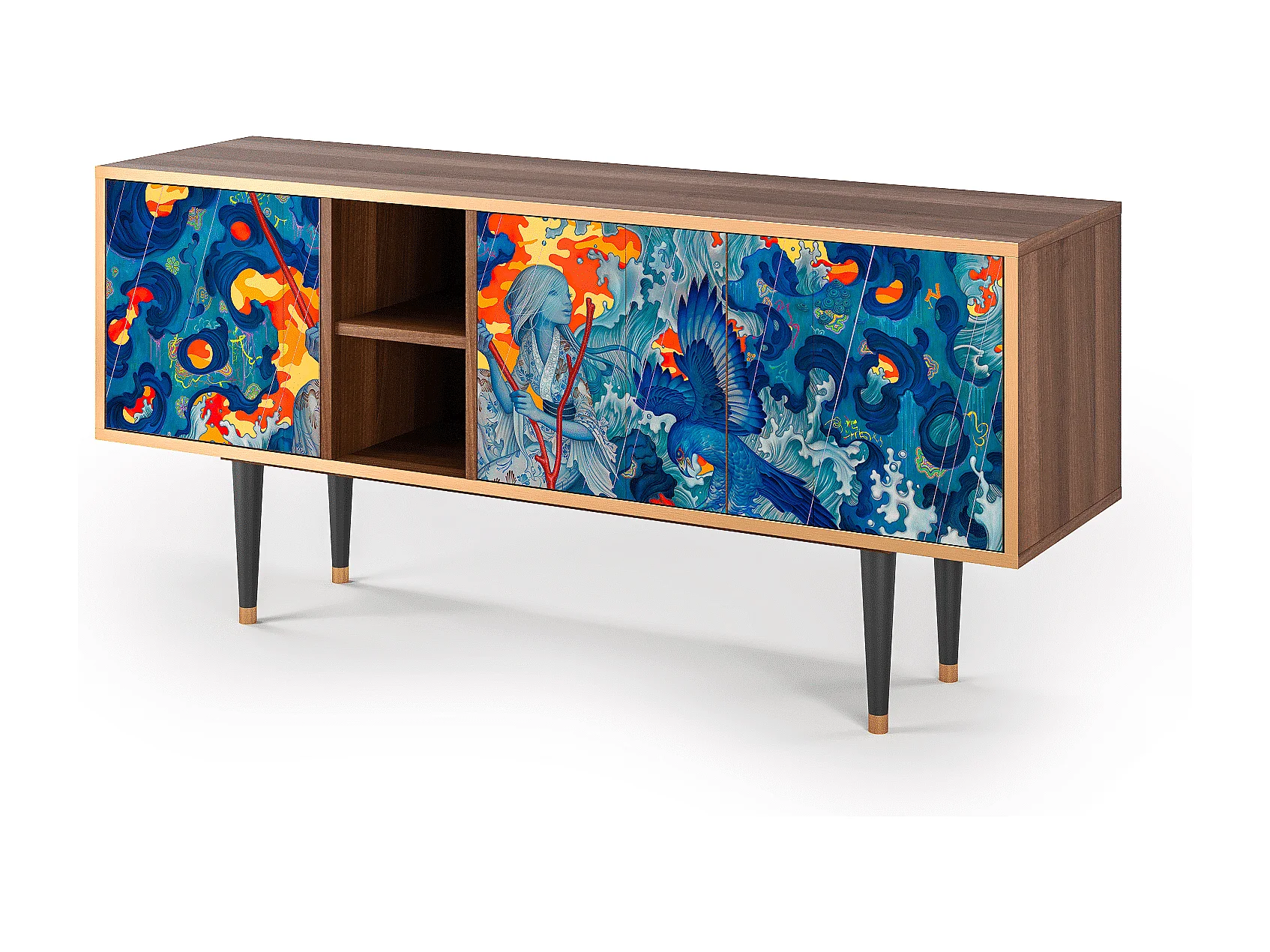 TV-meubel - 150х69х41 cm - T5 - The Girl - James Jean, Walnoot