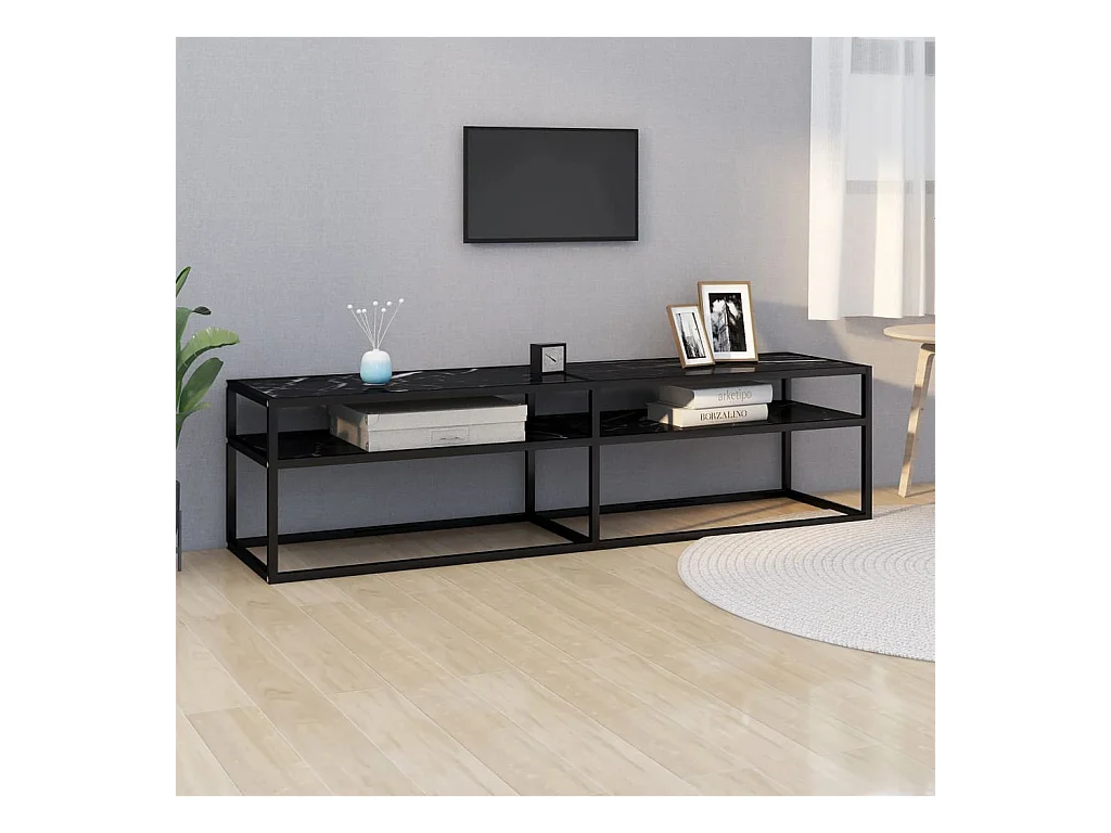 Tv-meubel 200x40x40,5 cm gehard glas zwartmarmerkleurig