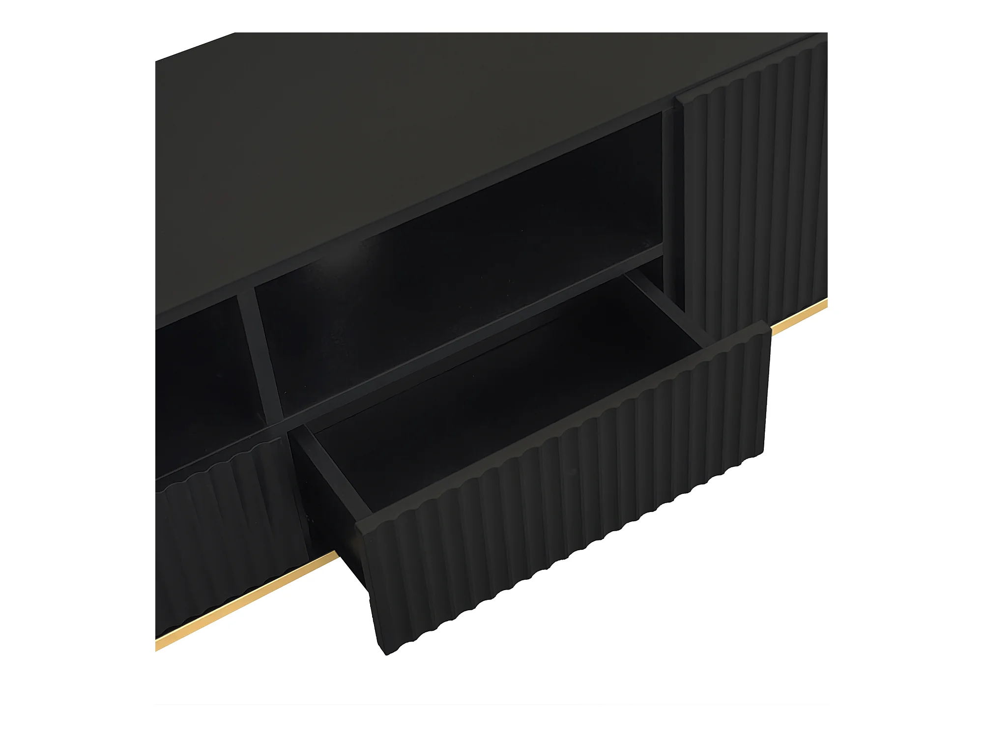 TV-meubel 165x36x55 cm met twee vakken en twee lades van zwarte spaanplaat voor de woonkamer