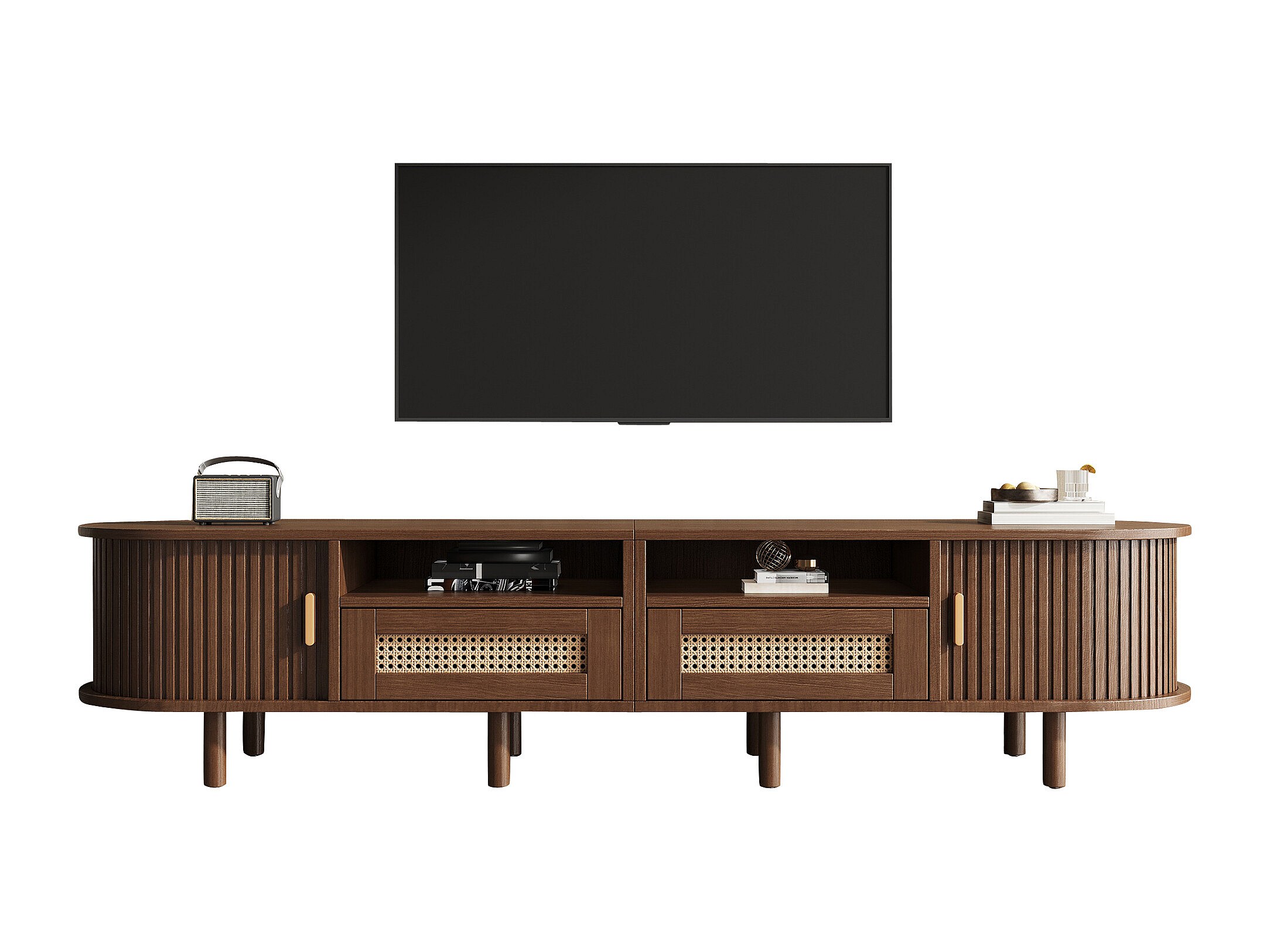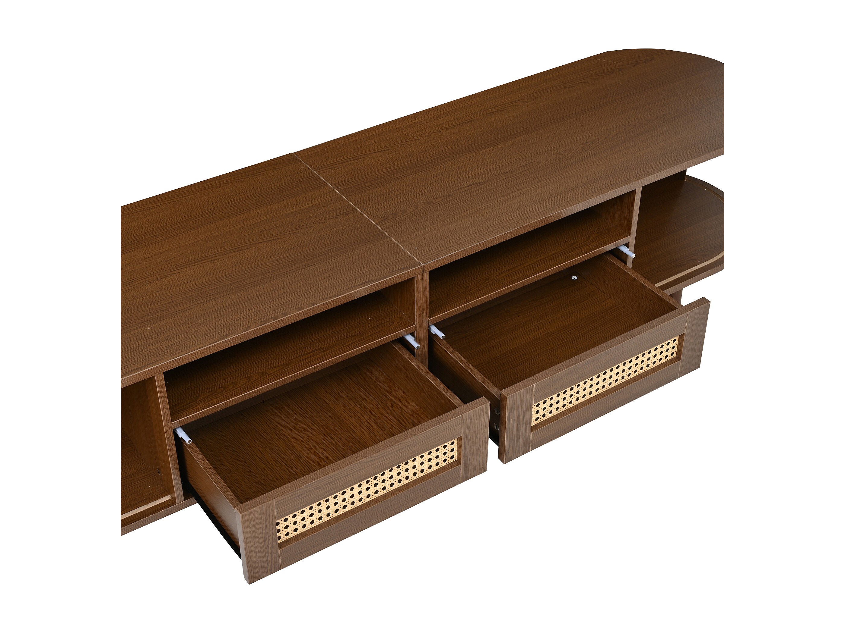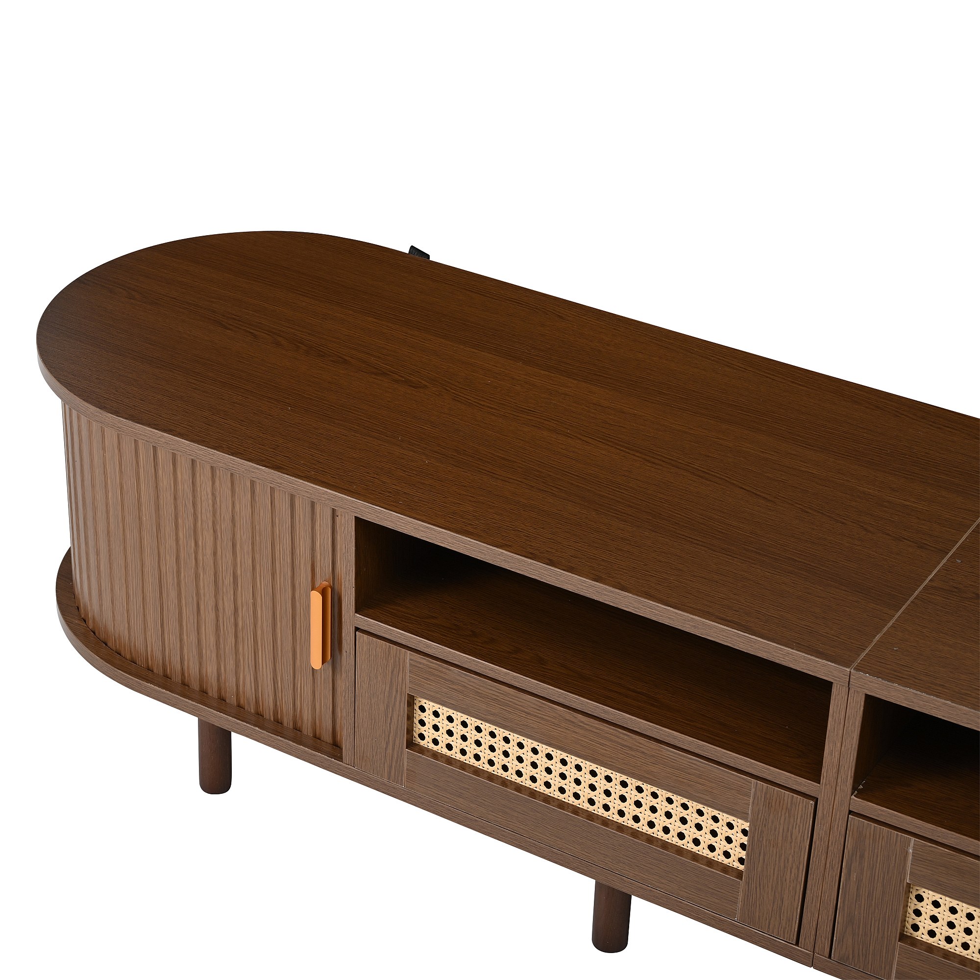 TV-meubel 170x40x40 cm - met 2 rieten laden - 2 schuifdeuren - MDF - Bruin