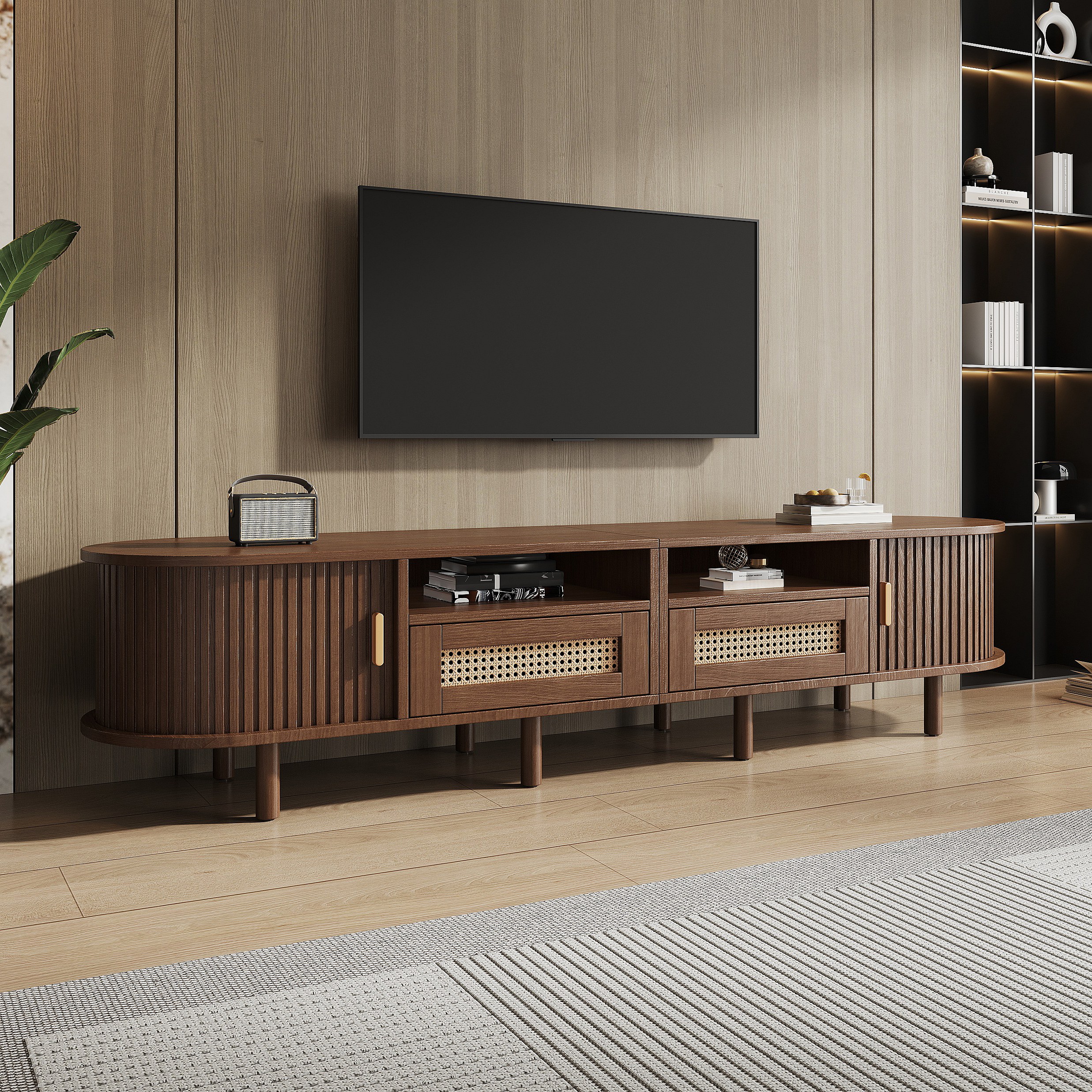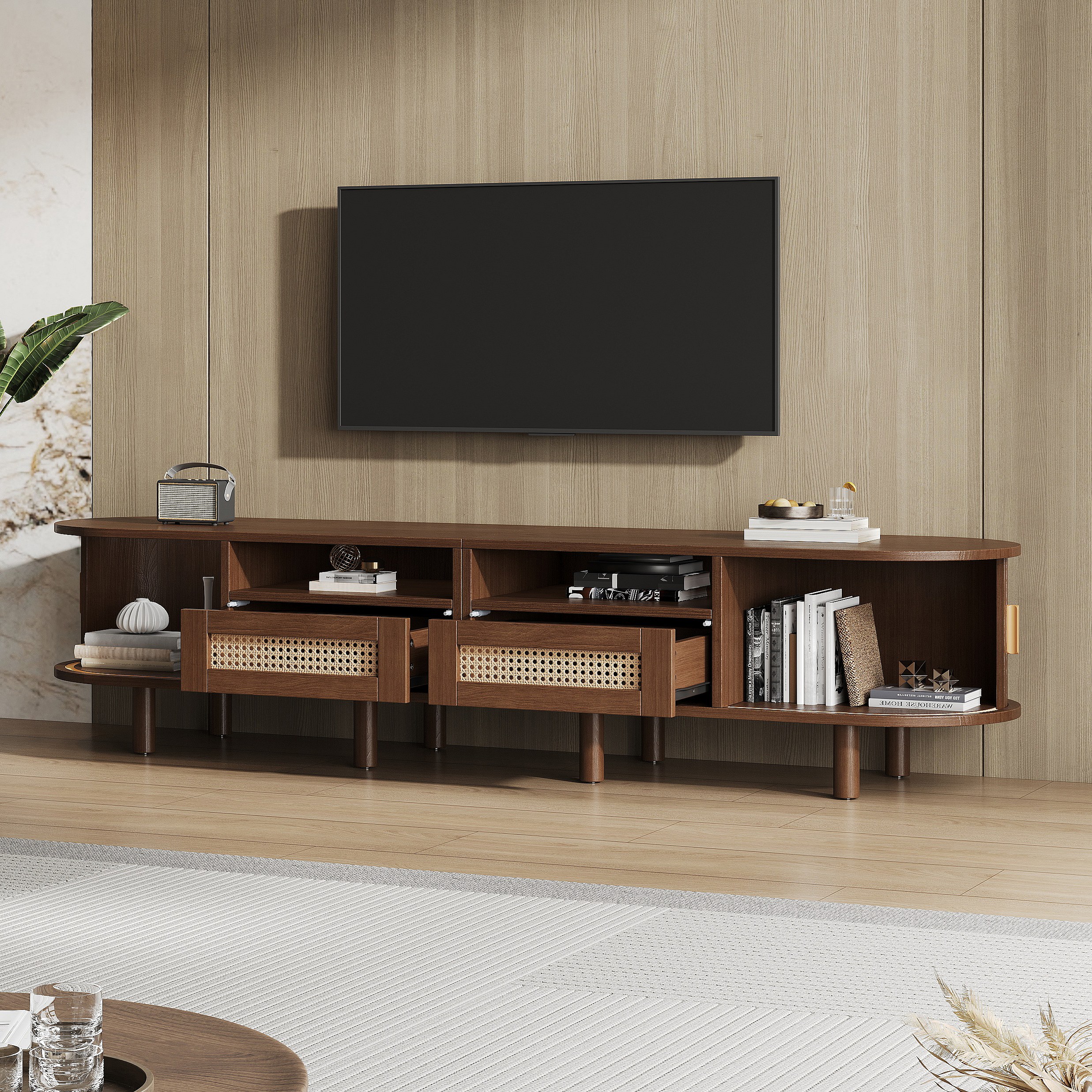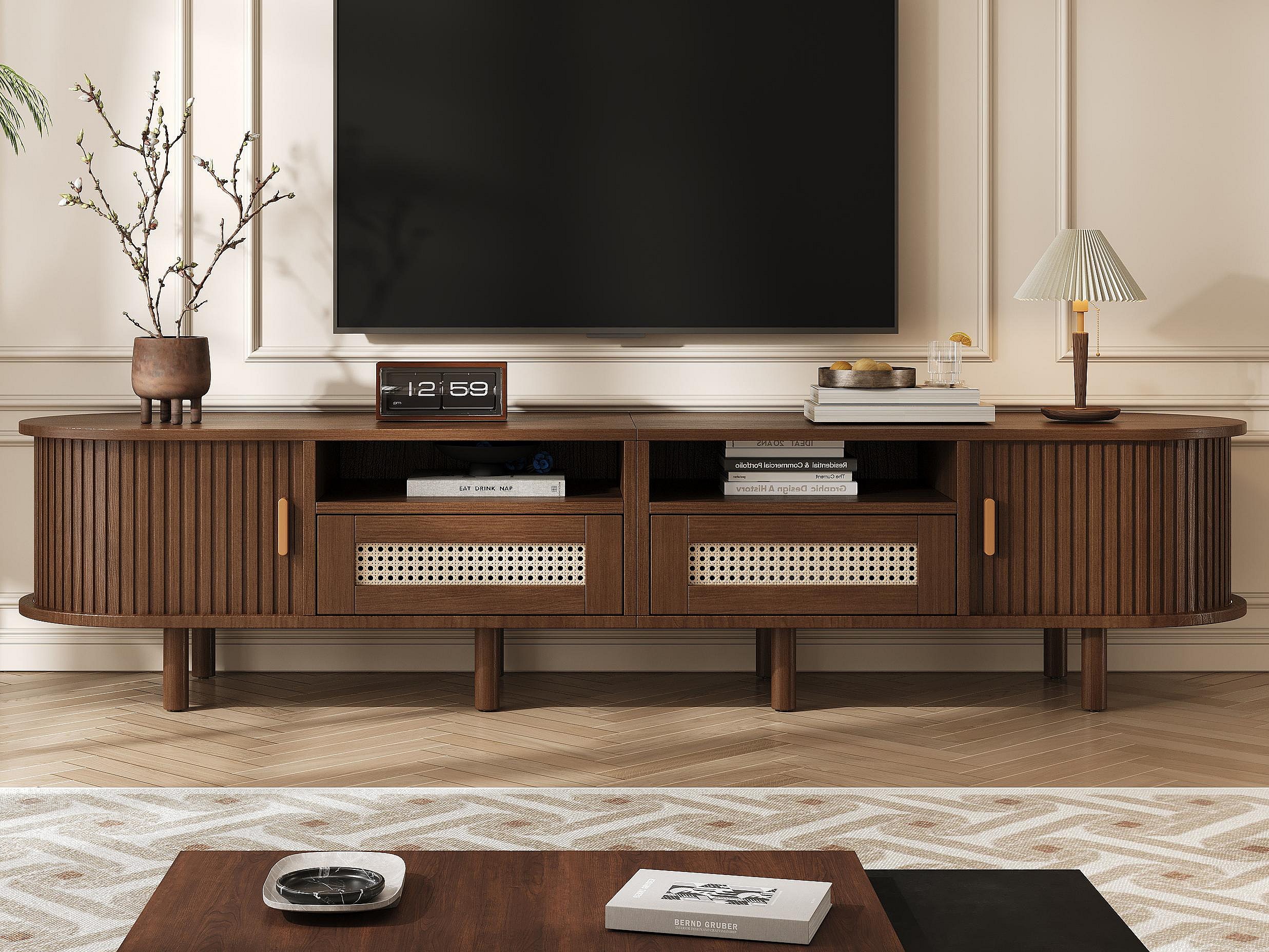 TV-meubel 170x40x40 cm - met 2 rieten laden - 2 schuifdeuren - MDF - Bruin