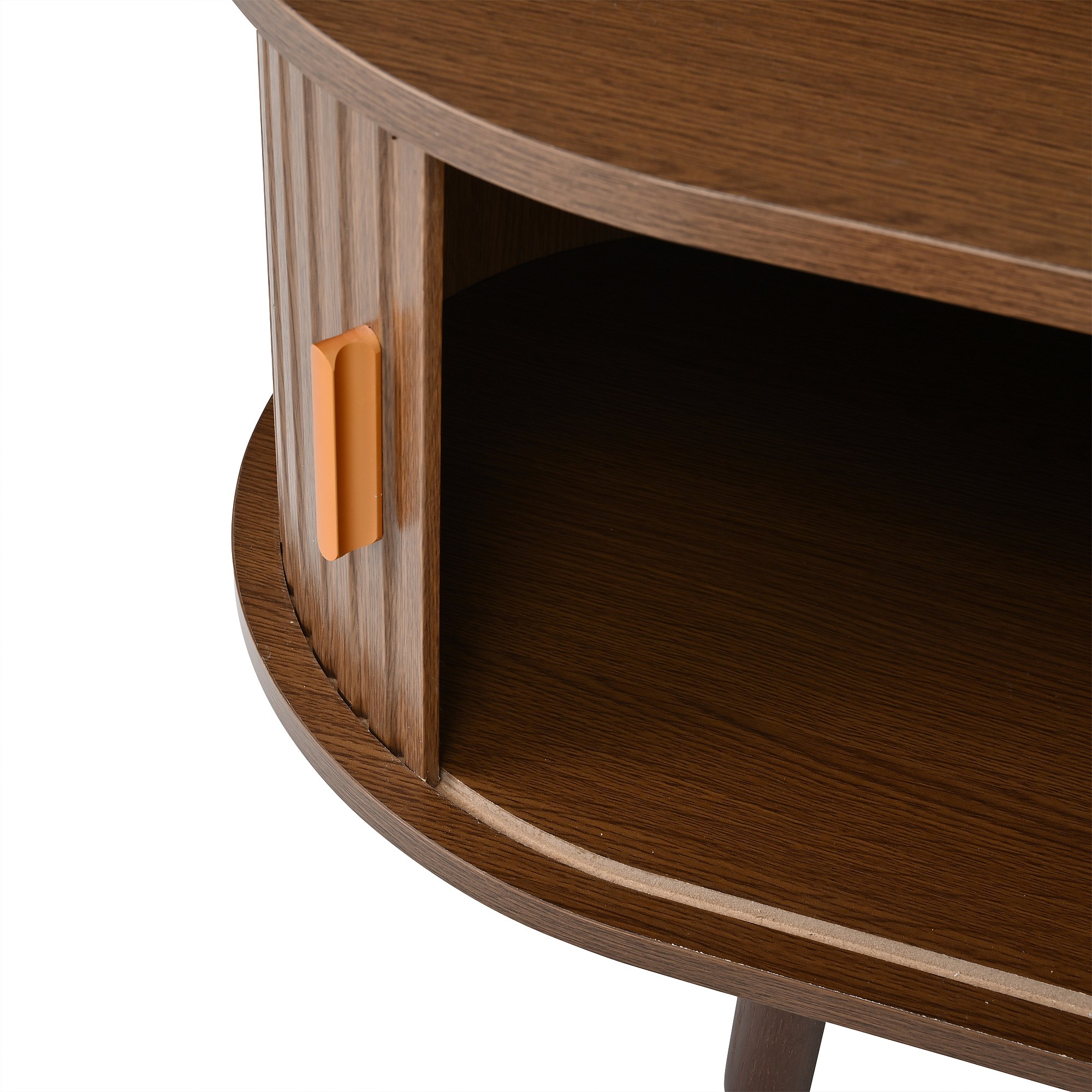 Twee lades zijn perfect voor het opbergen van kleine voorwerpen, terwijl de schuifdeur ruimte biedt voor boeken of decoratieve items. De open lade biedt gemakkelijk toegang tot veelgebruikte voorwerpen.