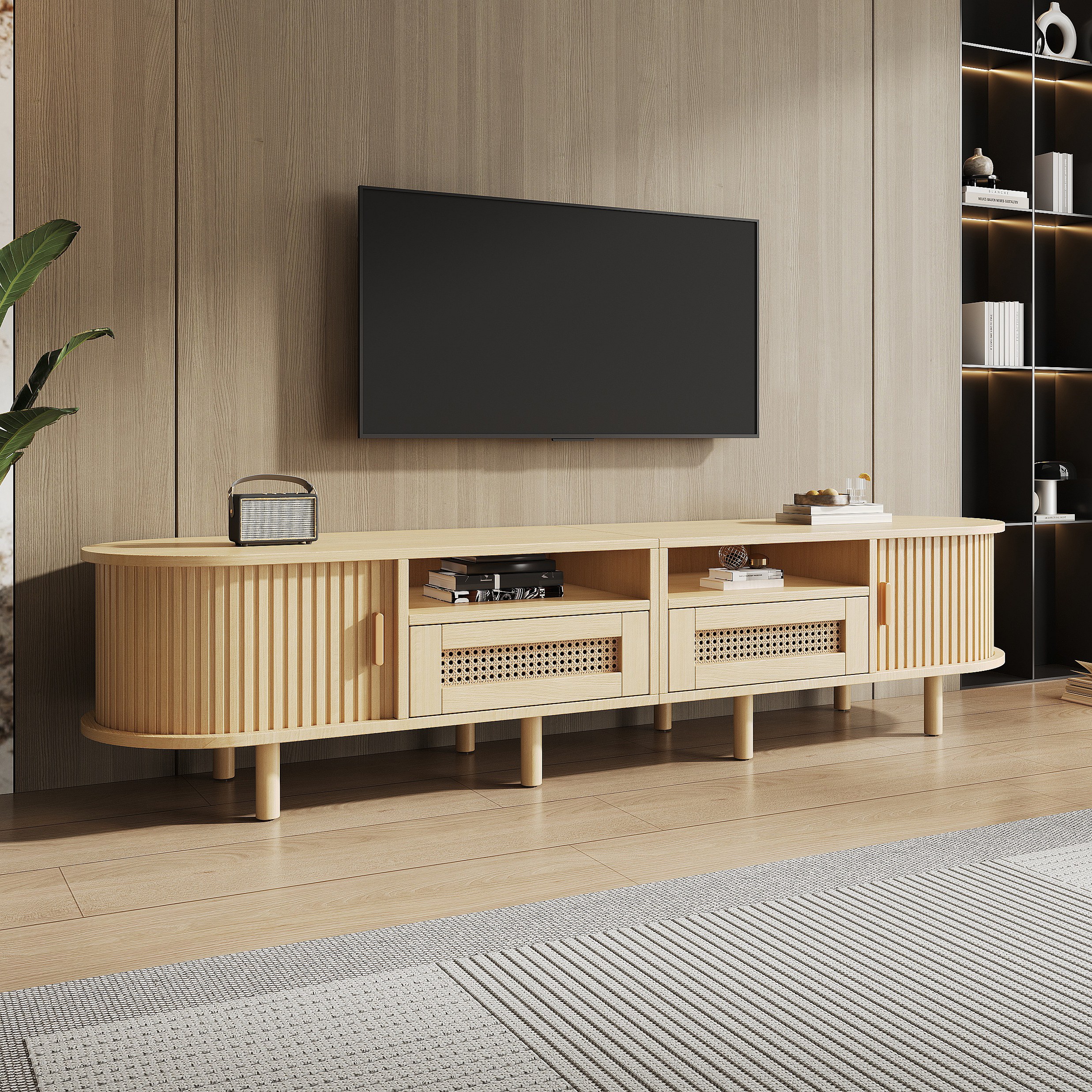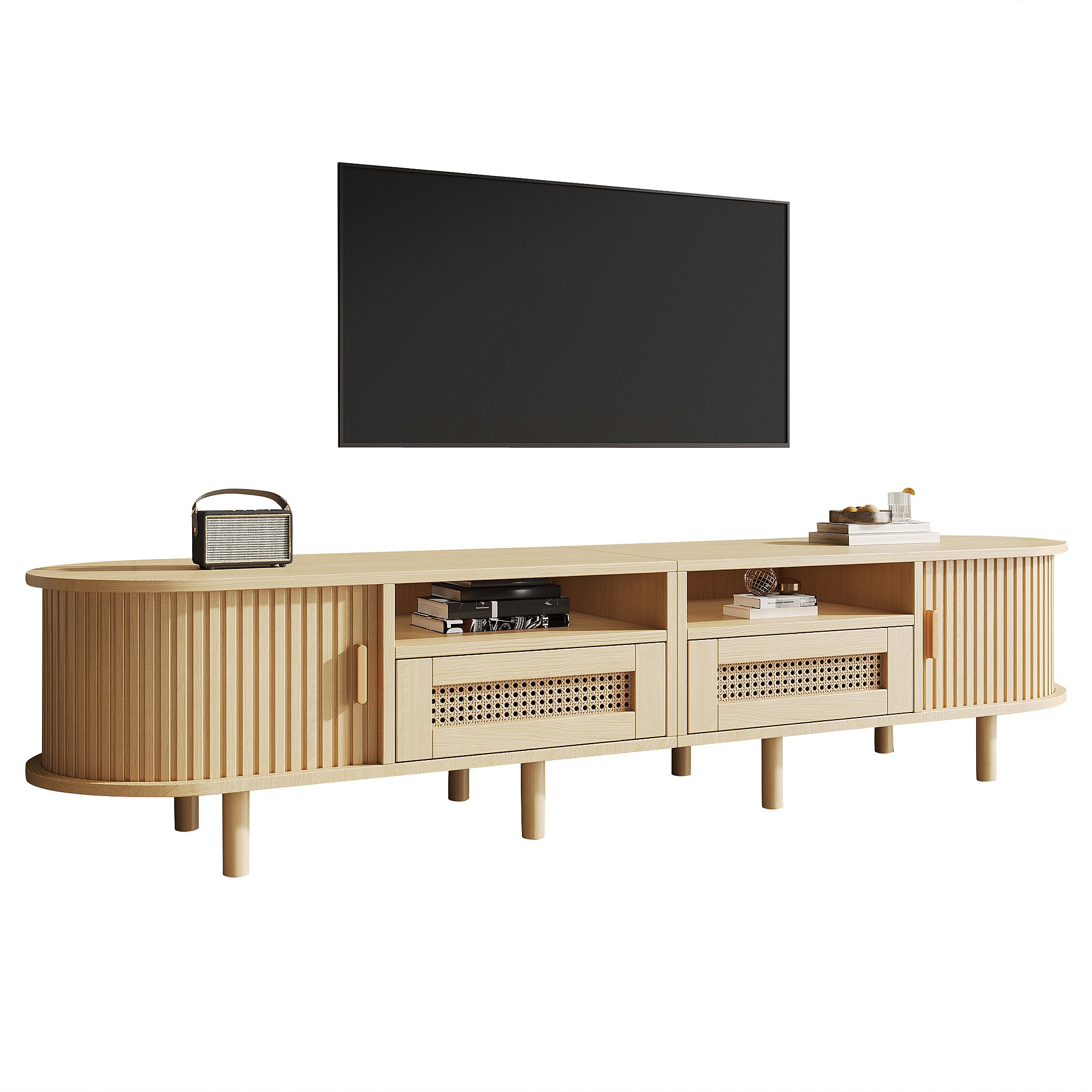 TV-meubel 170x40x40 cm - met 2 rieten laden - 2 schuifdeuren - MDF - Natuur