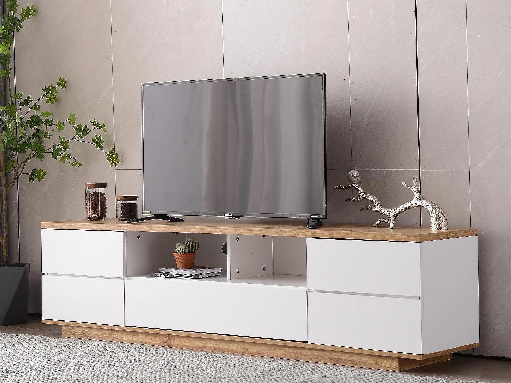 TV-meubel 180 cm - 5 deuren en 2 nissen - MDF - naturel en wit fineer