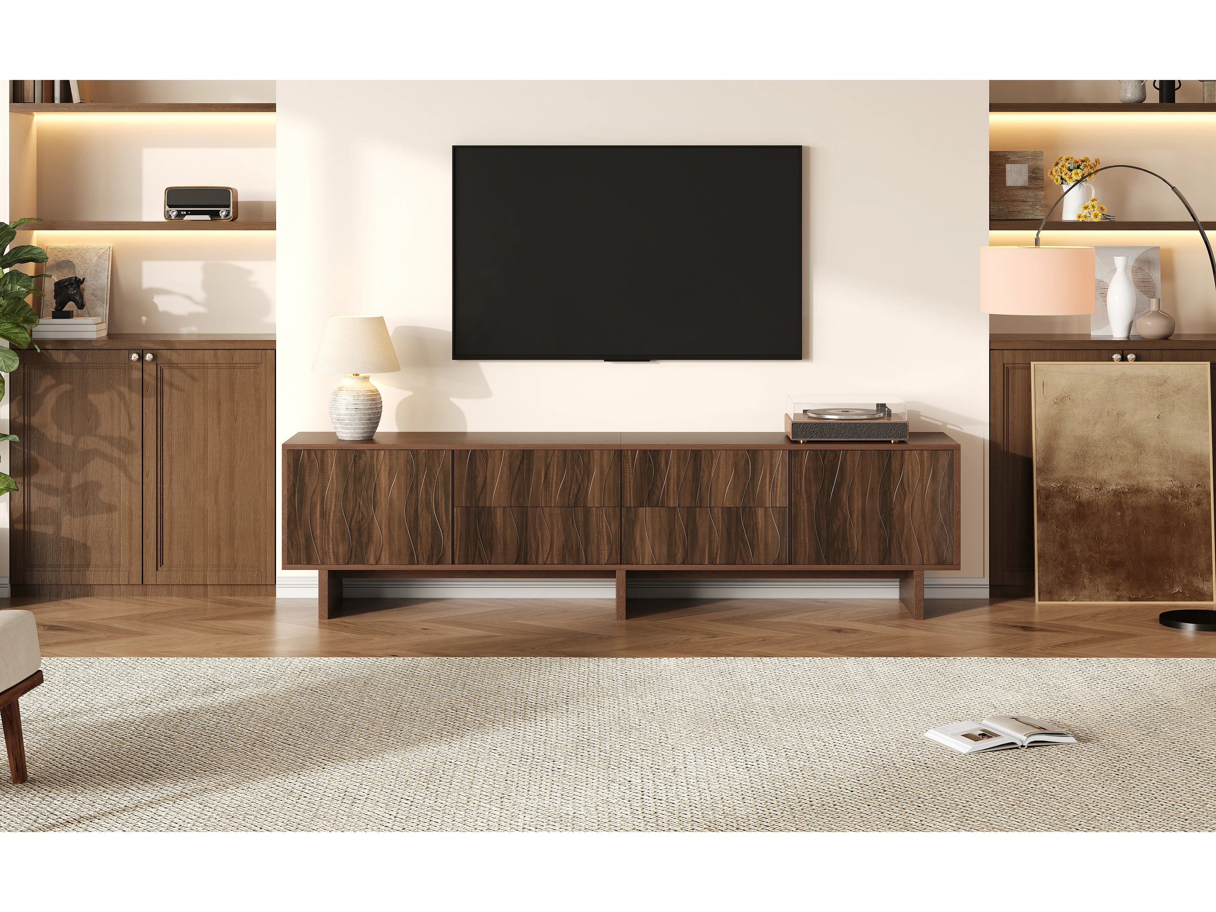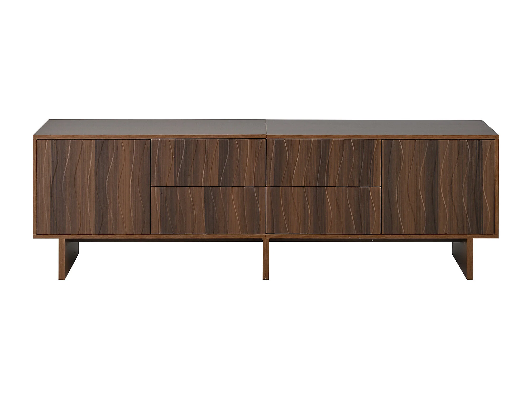 TV-meubel 180 x 40 x 56 cm met 4 lades en 2 deuren - Golvend design - Donker walnootkleur
