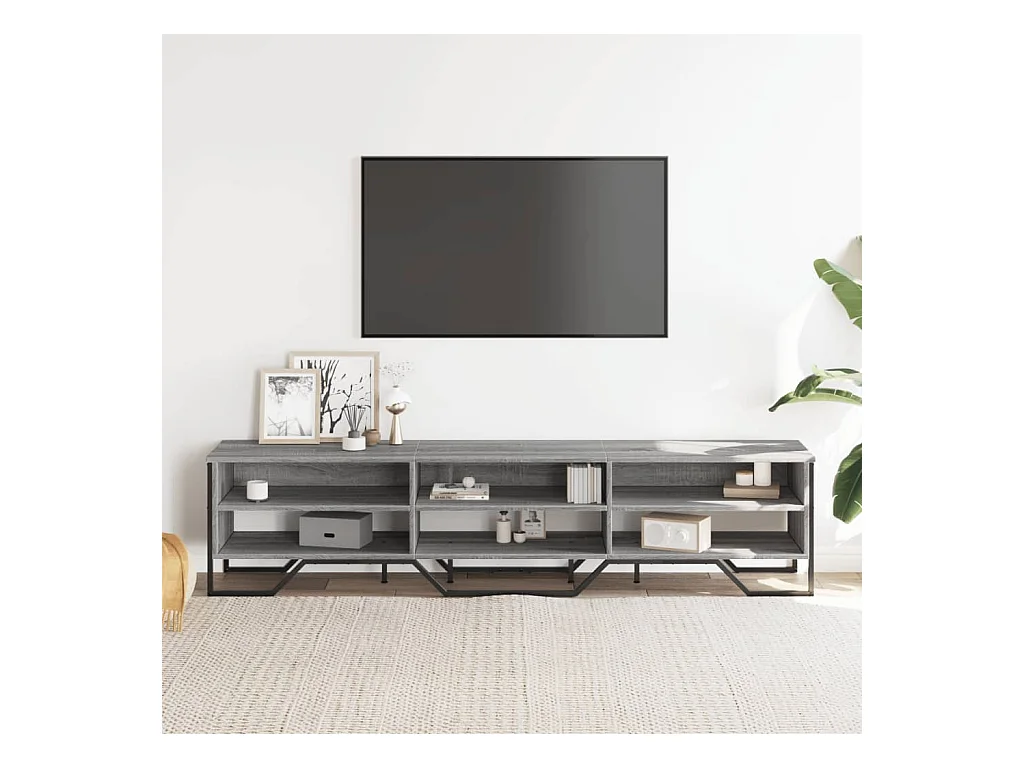 Tv-meubel 210x35x41 cm bewerkt hout grijs sonoma eikenkleurig