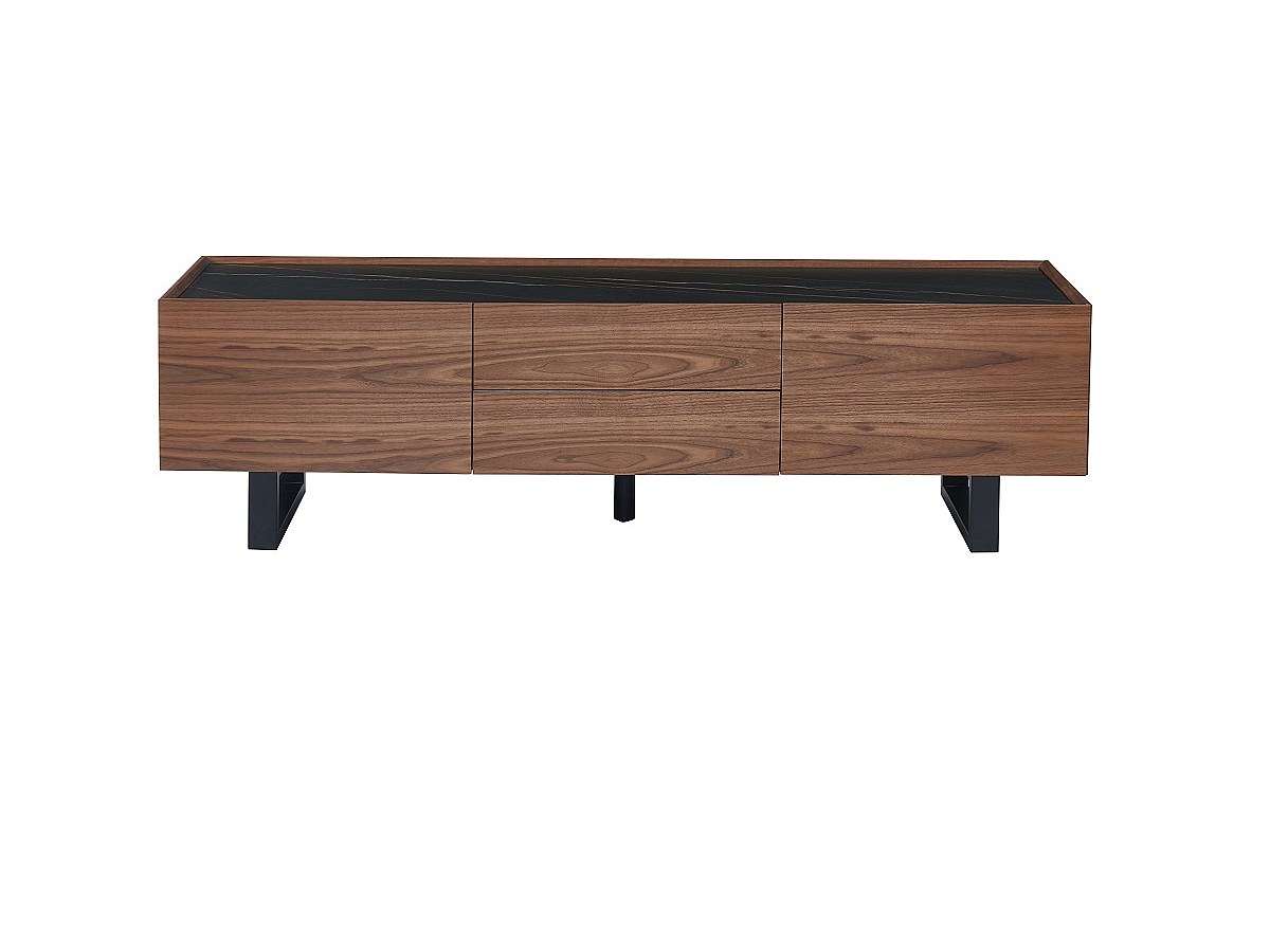 Tv-meubel AZIMA - 2 deuren en 3 lades - MDF, keramiek en metaal - Noten
