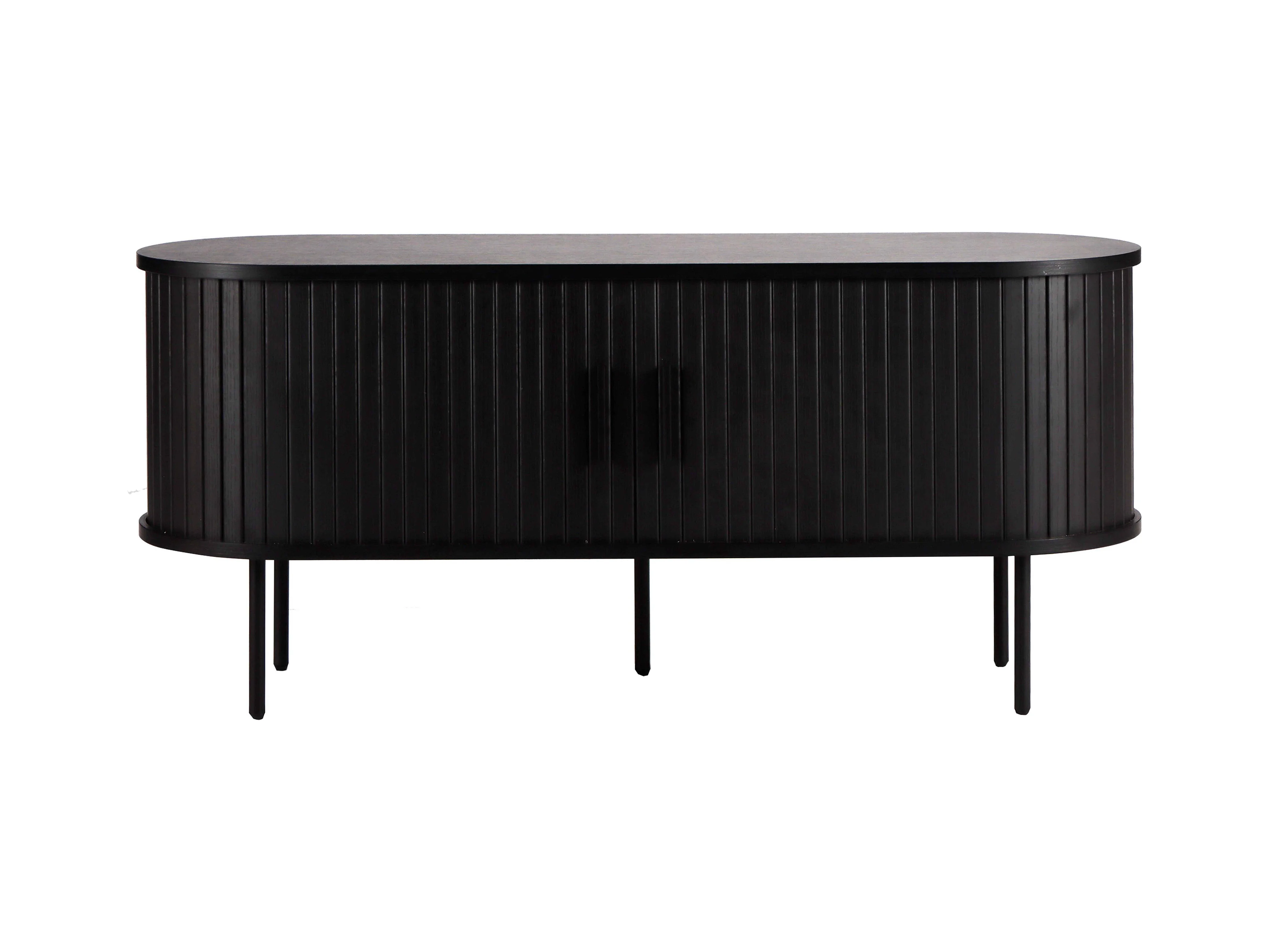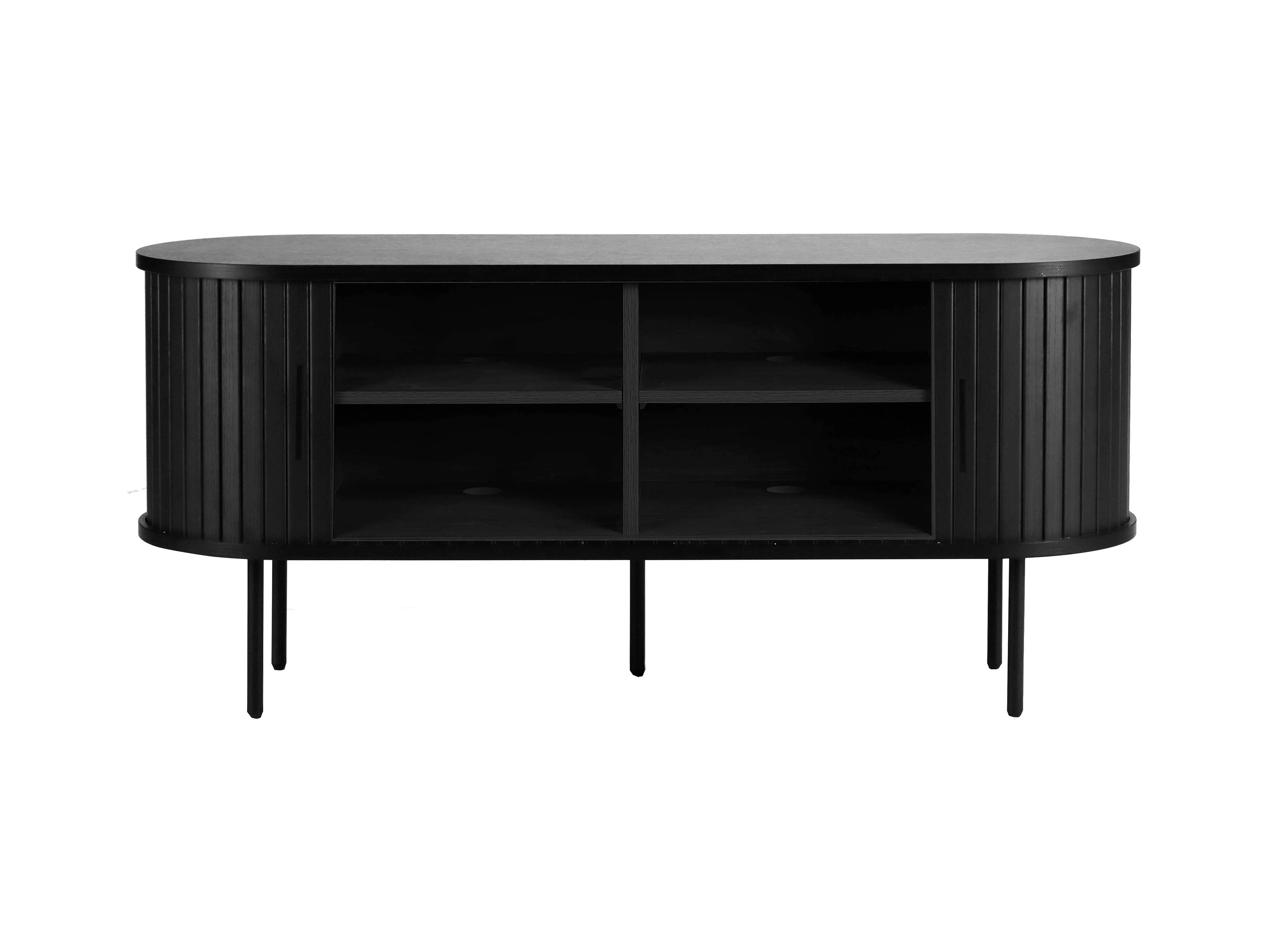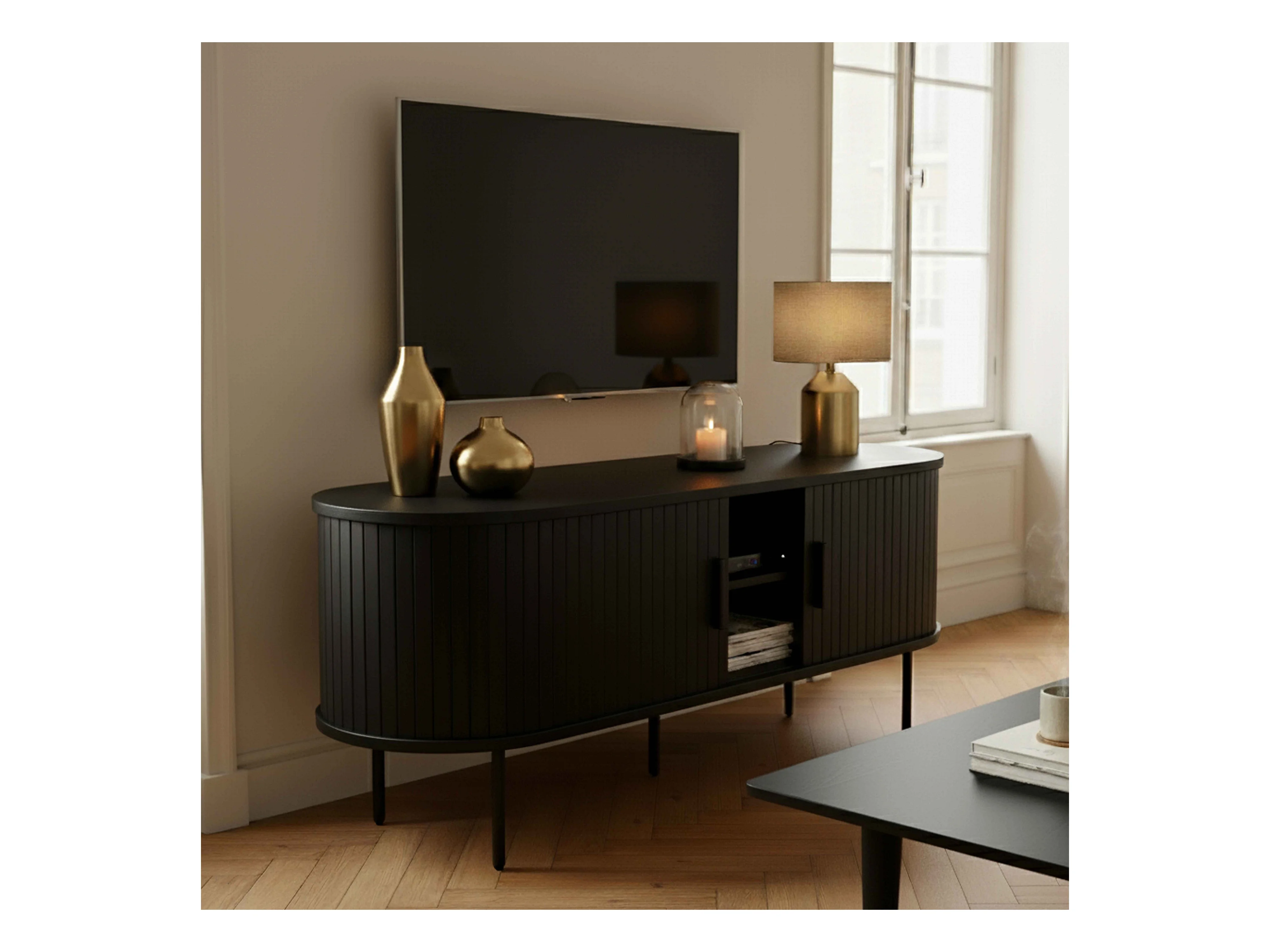 TV-meubel 175 cm, met 2 lades, 2 deuren, poten en handgreep van goudkleurig metaal, gesneden patronen, Scandinavische stijl, houten woonkamermeubel - zwart