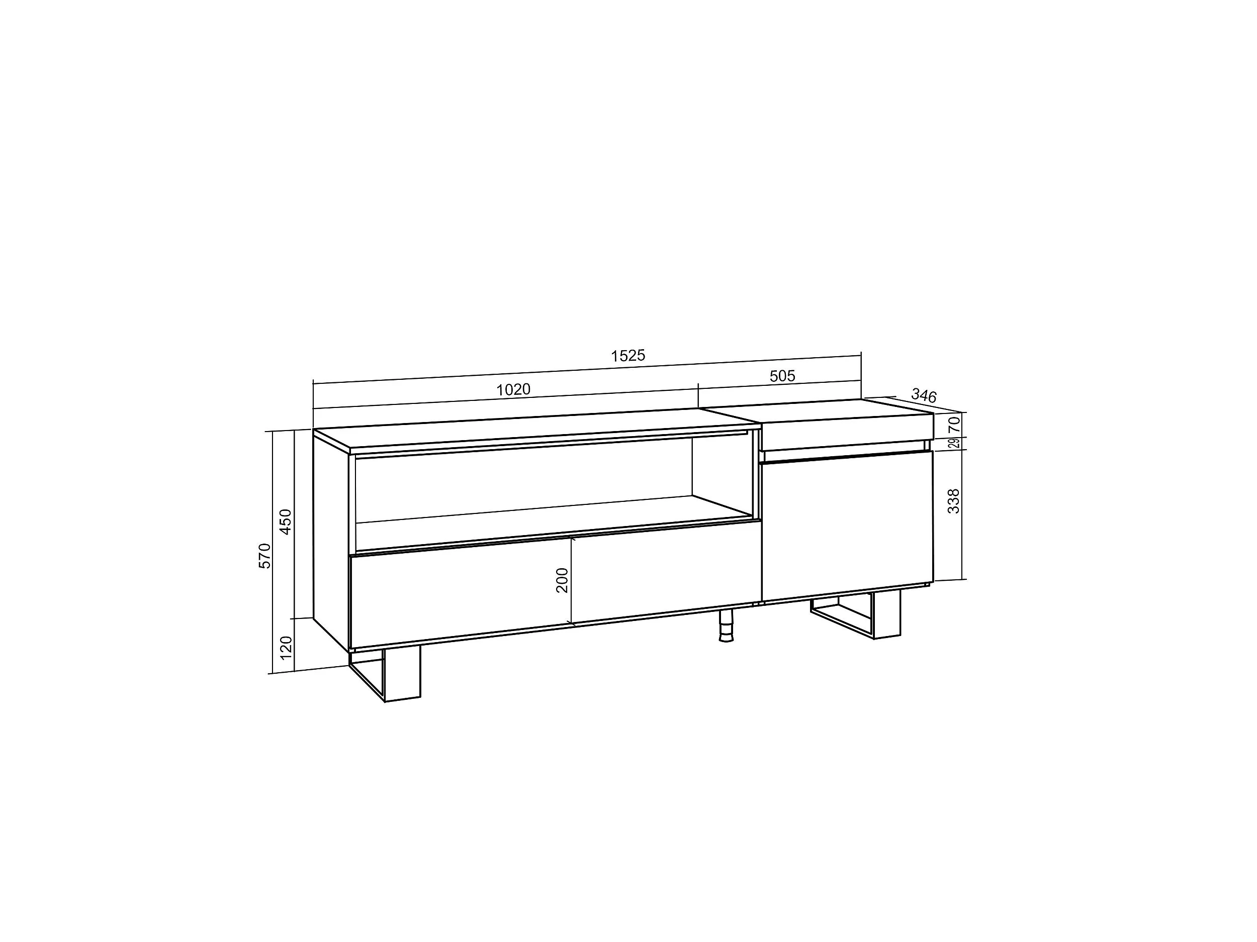 TV-Meubel, Lowboard, 150x35x57cm, Voor tv's tot 65", Industrieel design, Eiken