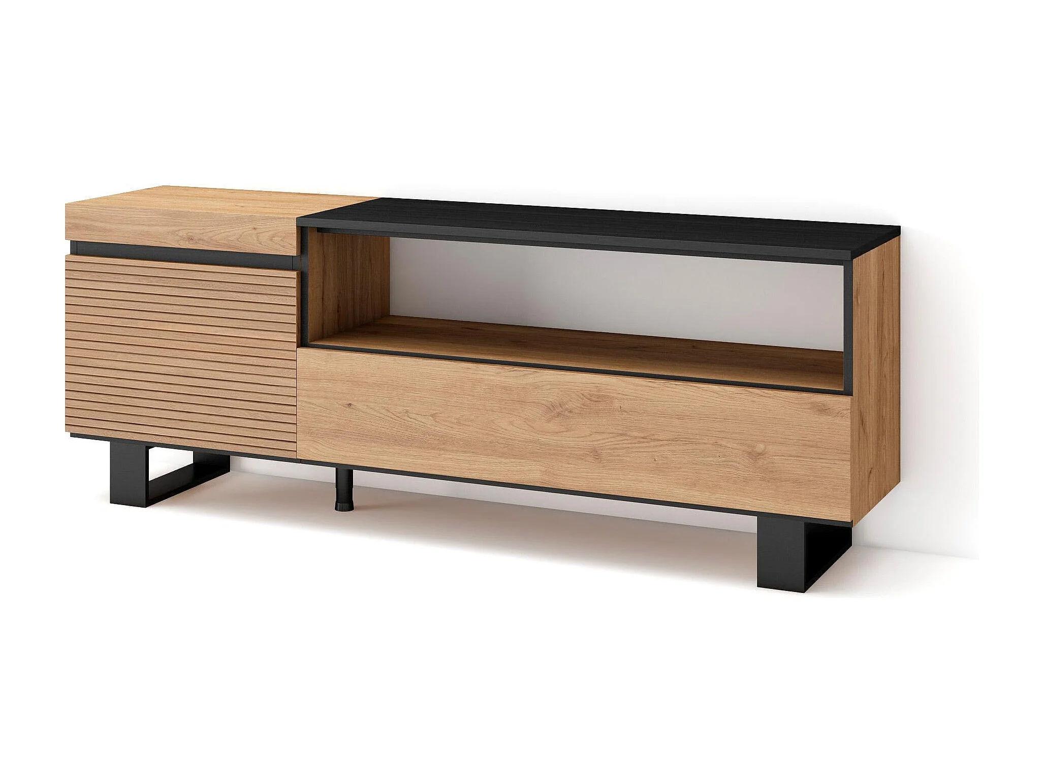 TV-Meubel, Lowboard, 150x35x57cm, Voor tv's tot 65", Industrieel design, Eiken