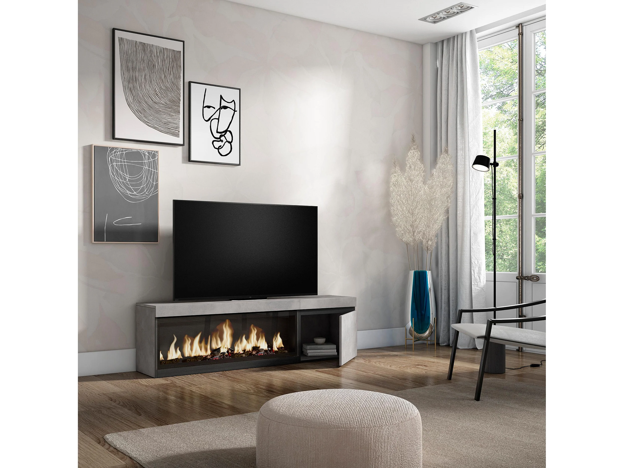 TV-Meubel, Lowboard, 158x35x45cm, Voor tv's tot 65", Elektrische haard XXL, Cement