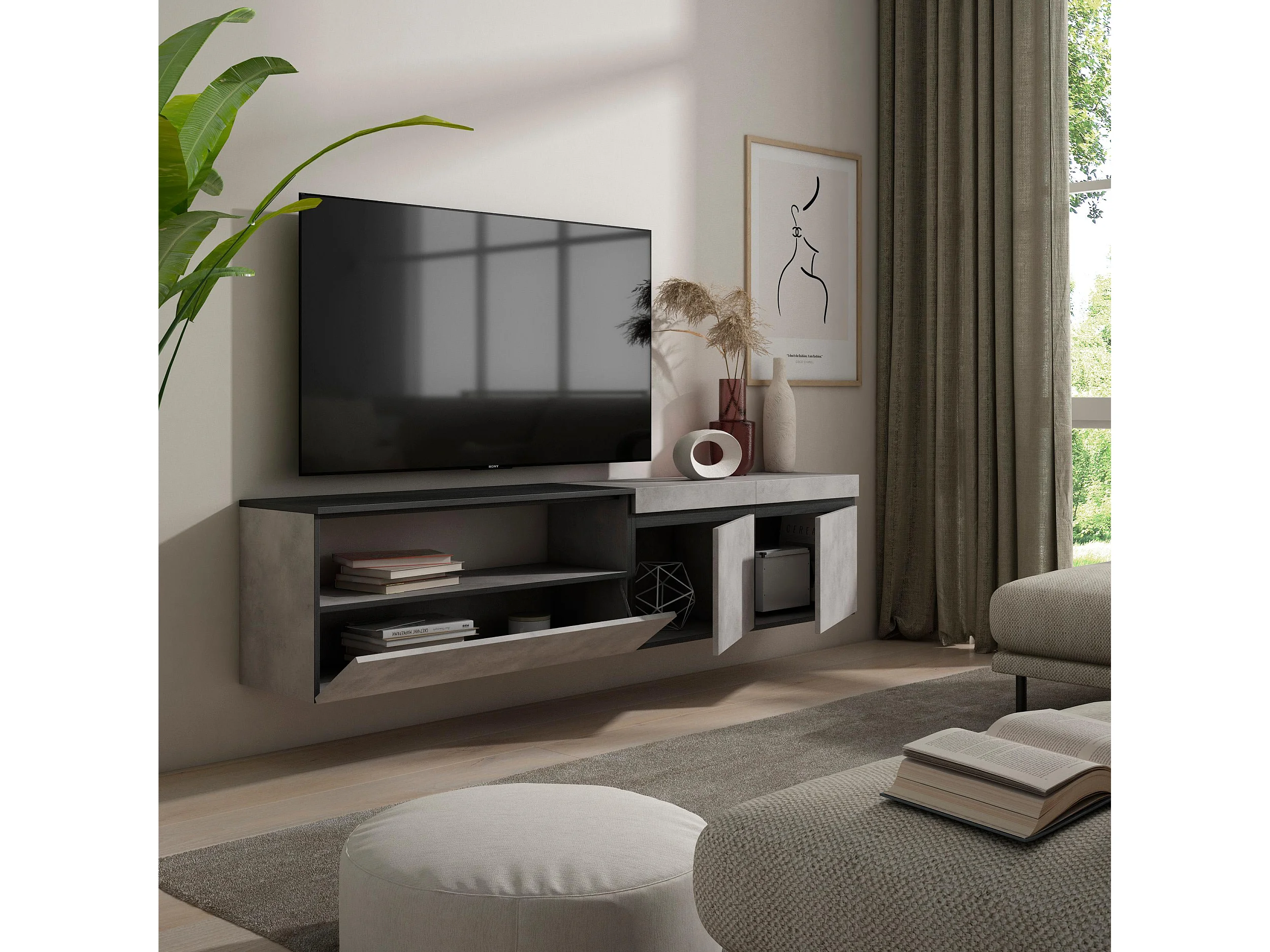 TV-Meubel, Lowboard, 200x35x45cm, Voor tv's tot 80", Hangend, Cement