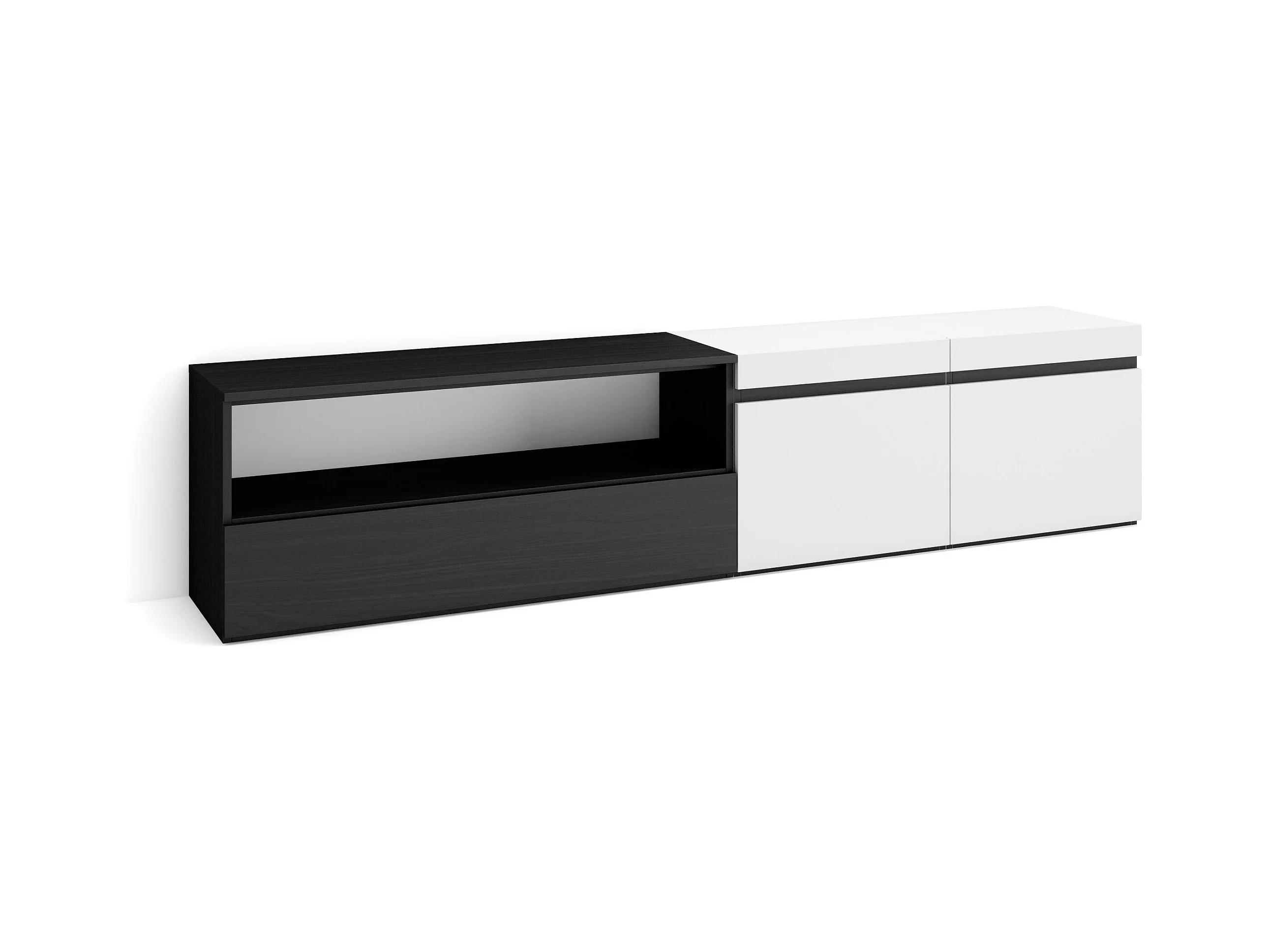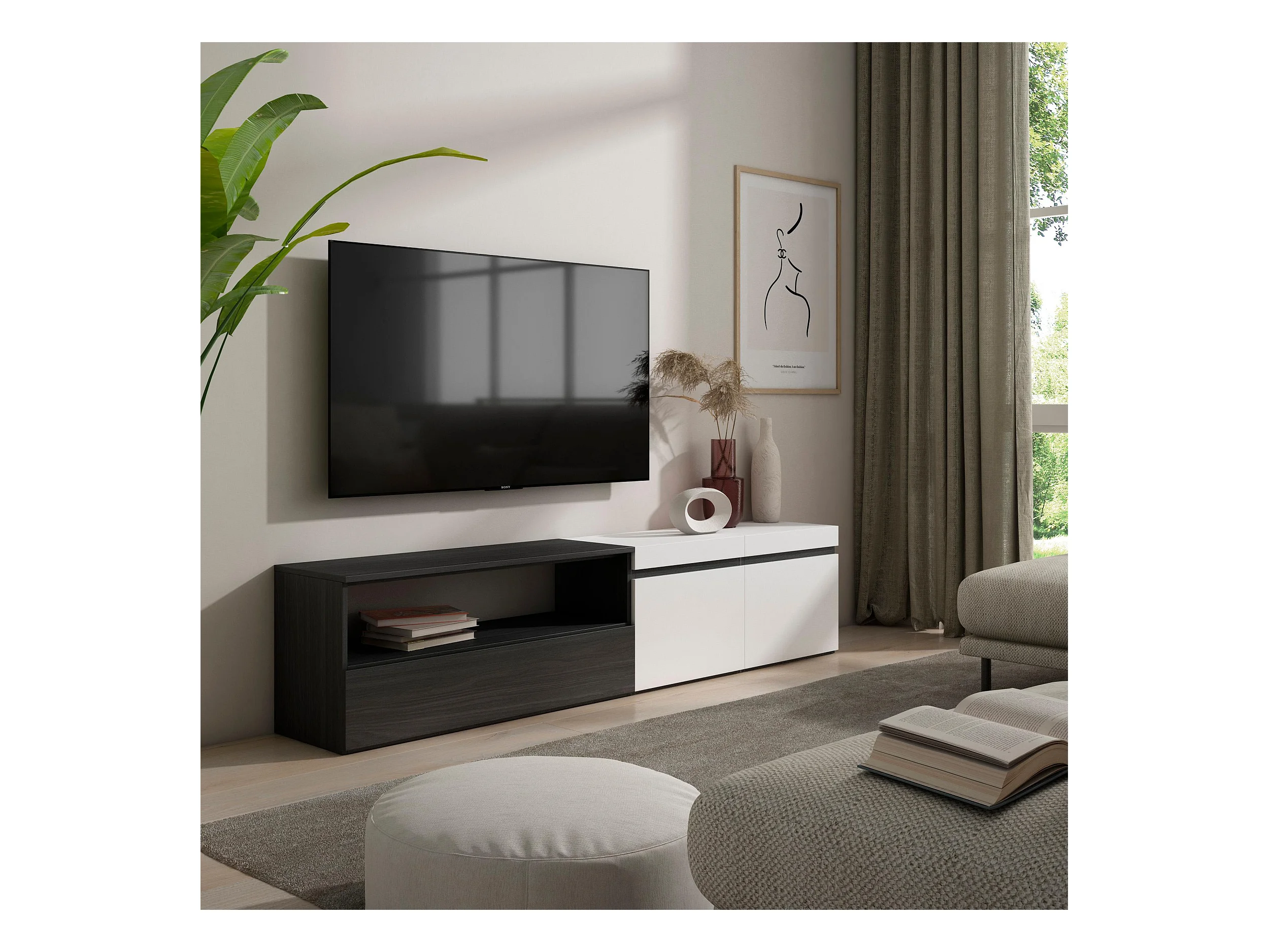 TV-Meubel, Lowboard, 200x35x45cm, Voor tv's tot 80", TV-Tafel, Wit en Zwart