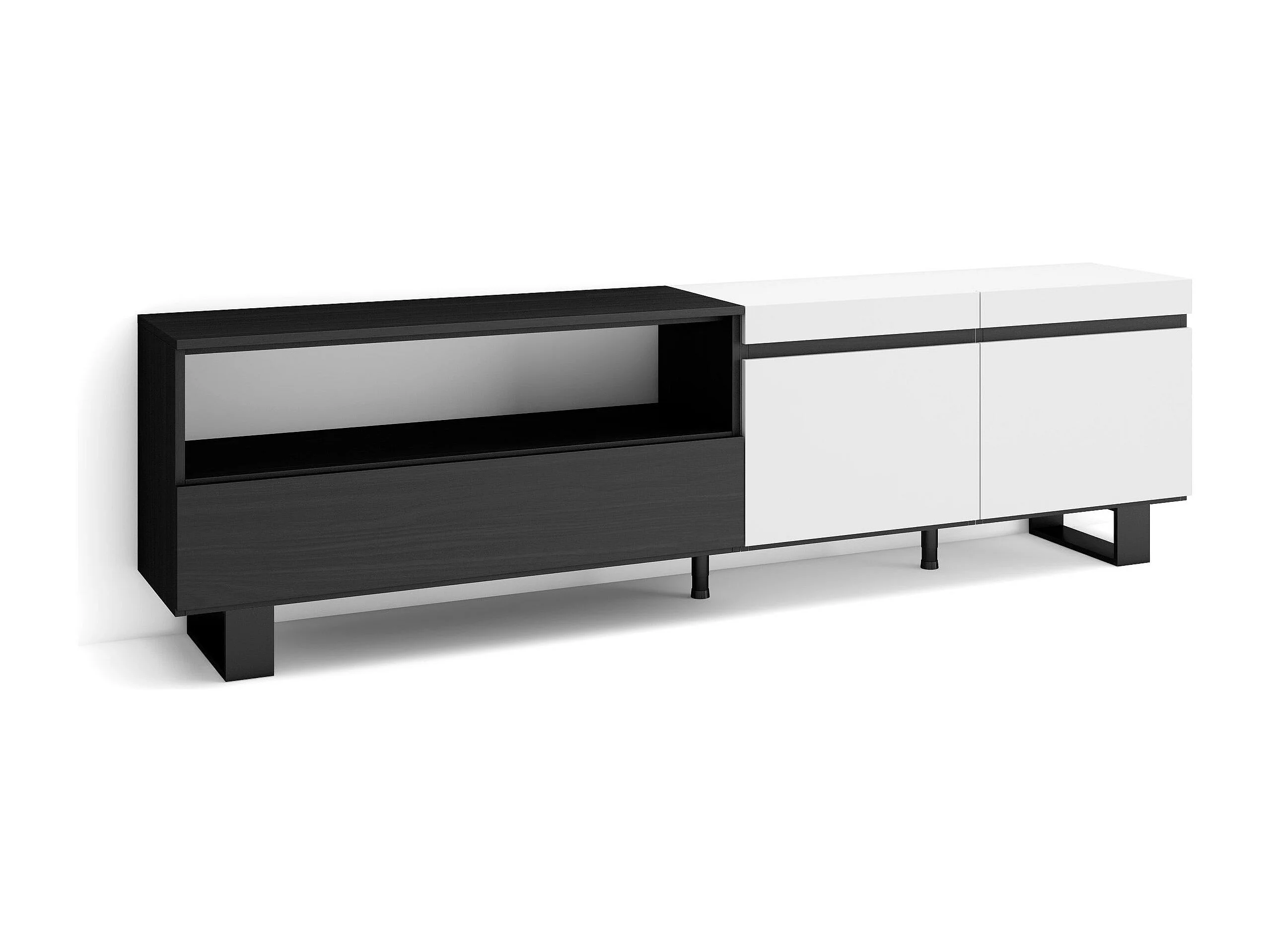 TV-Meubel, Lowboard, 200x35x57cm, Voor tv's tot 80", Industrieel design, Wit en Zwart