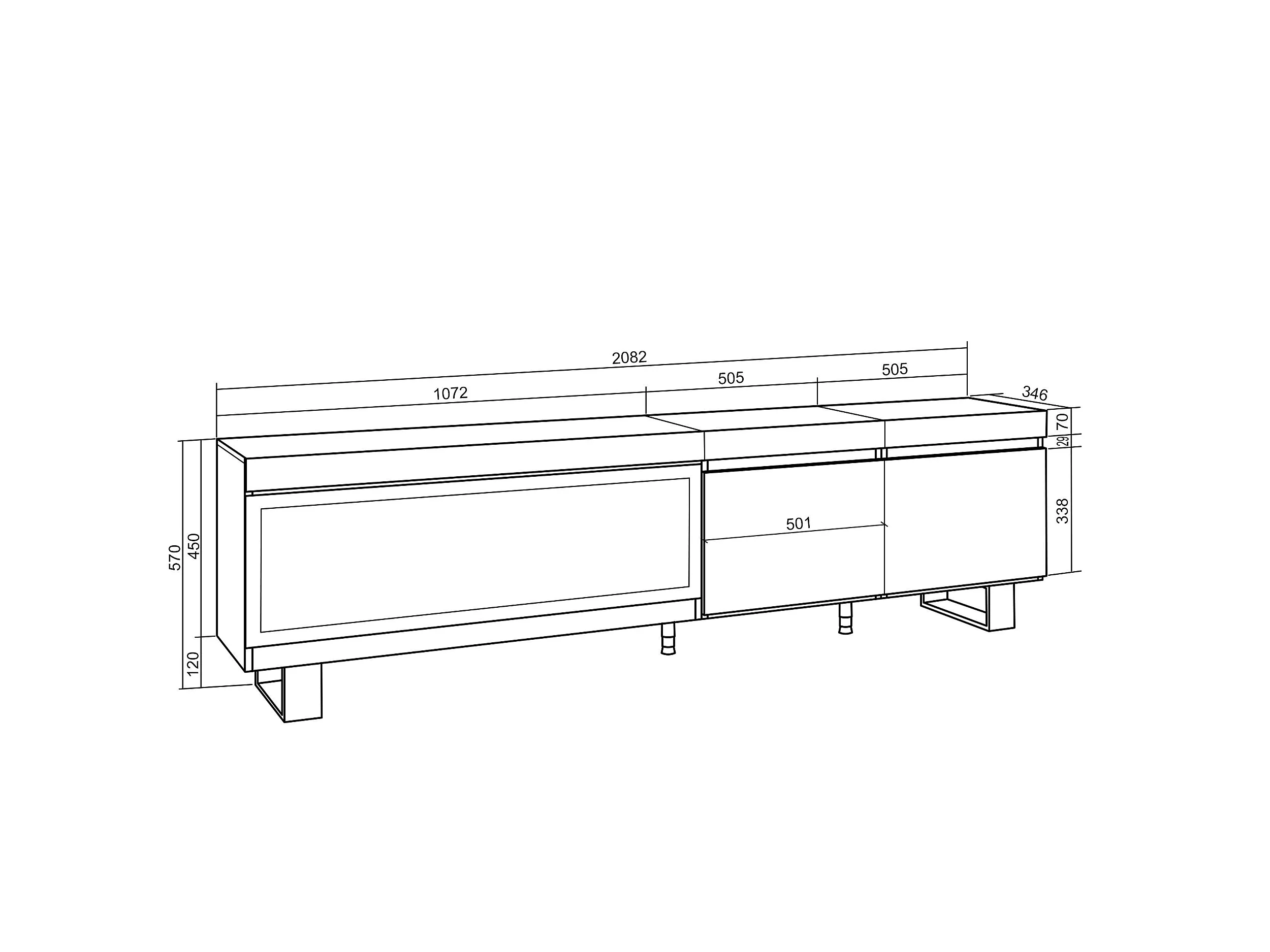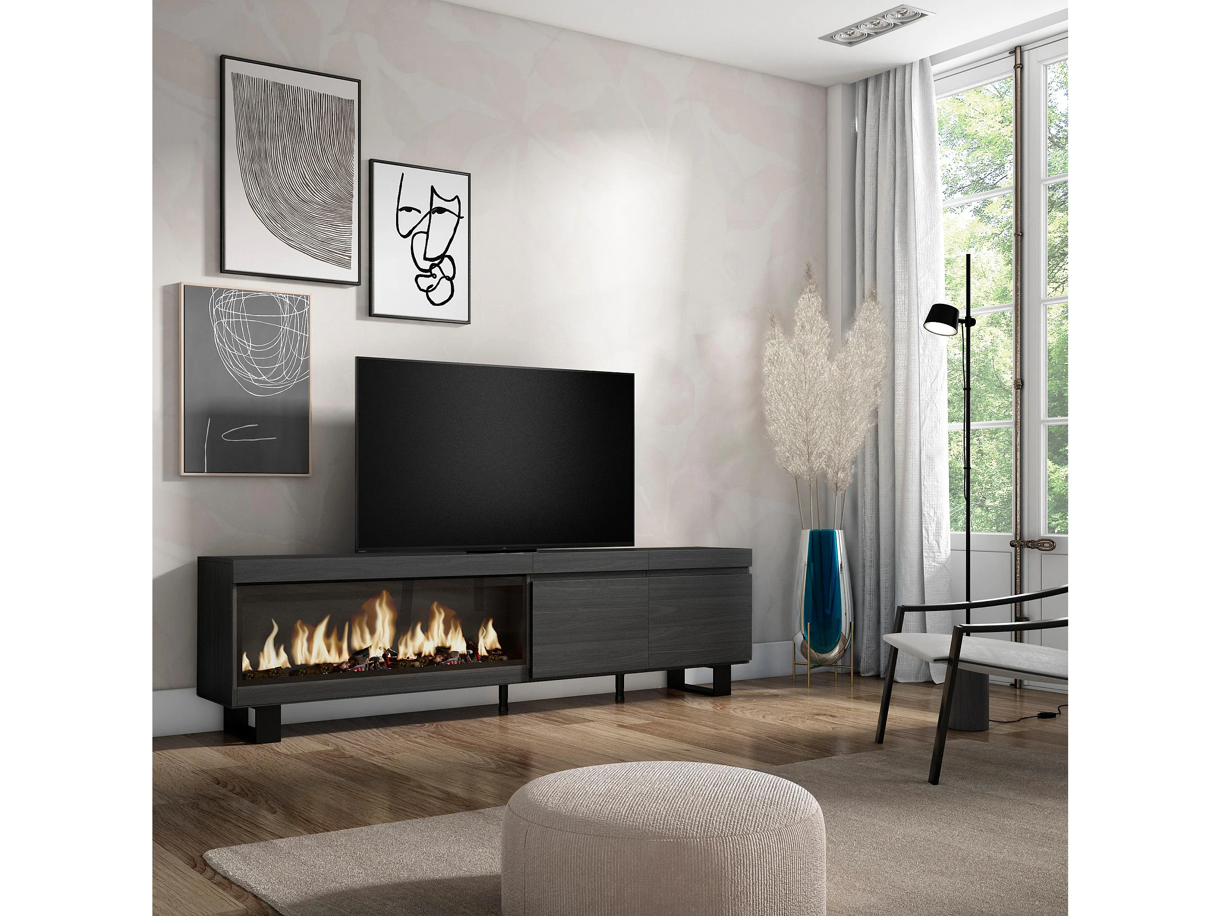 TV-Meubel, Lowboard, 208x35x57cm, Voor tv's tot 80", Elektrische haard XXL, Industrieel design, Zwart