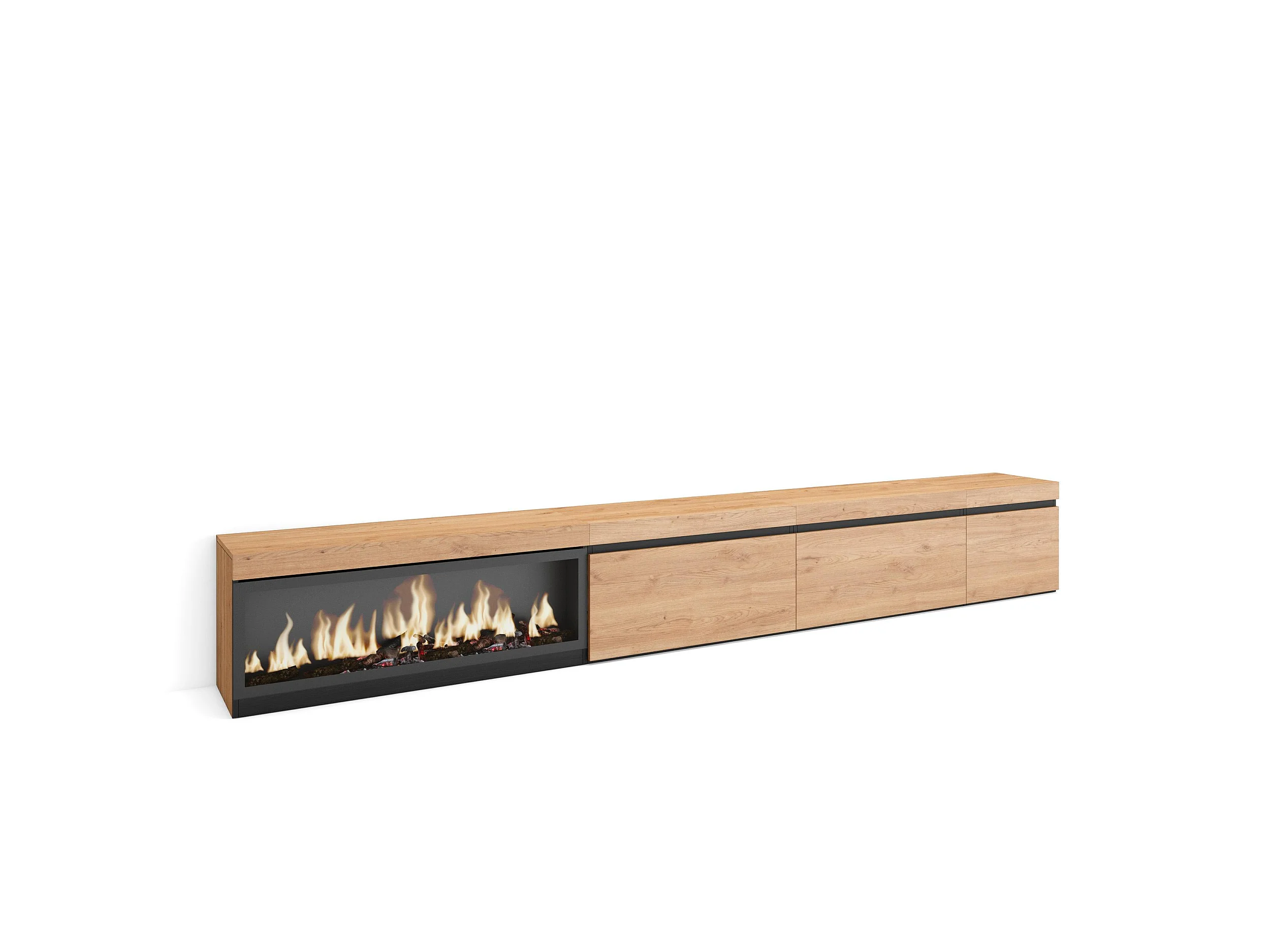 TV-Meubel, Lowboard, 317x35x45cm, Elektrische haard XXL, Eiken