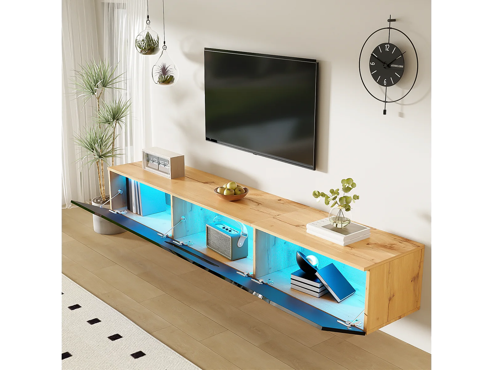 Tv-meubel met 3 deuren en ledverlichting, wandmeubel voor de woonkamer, houten tv-meubel, 180 cm, zwart met houttinten