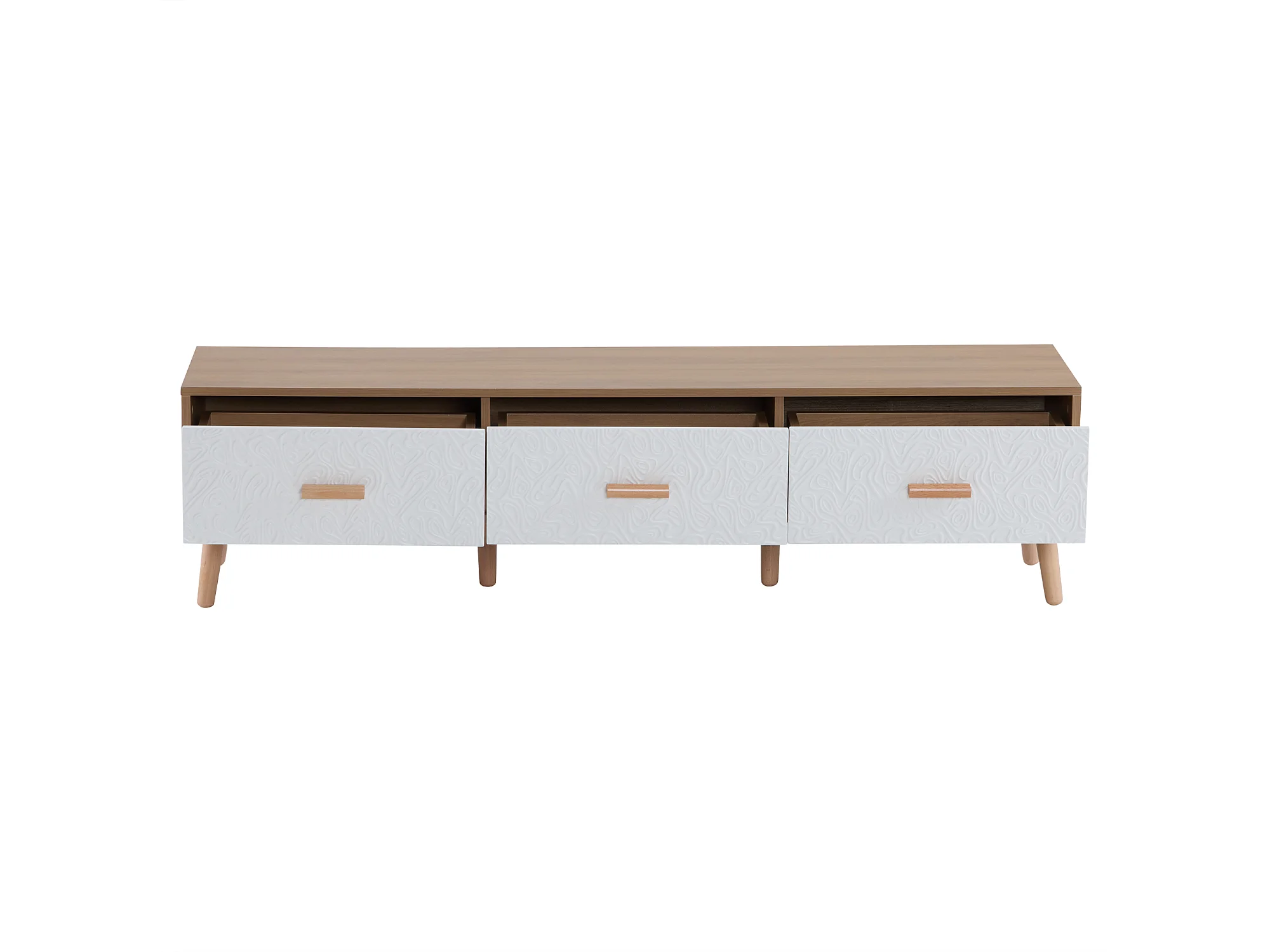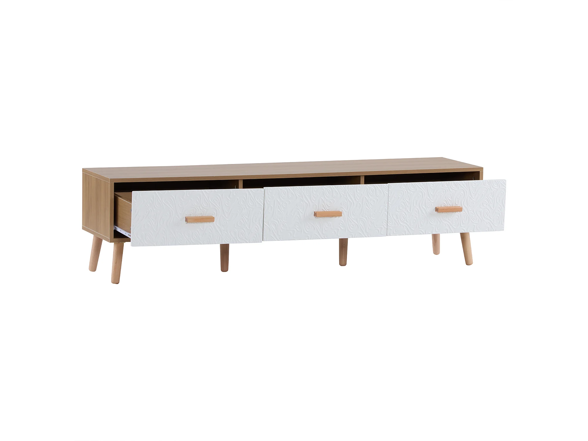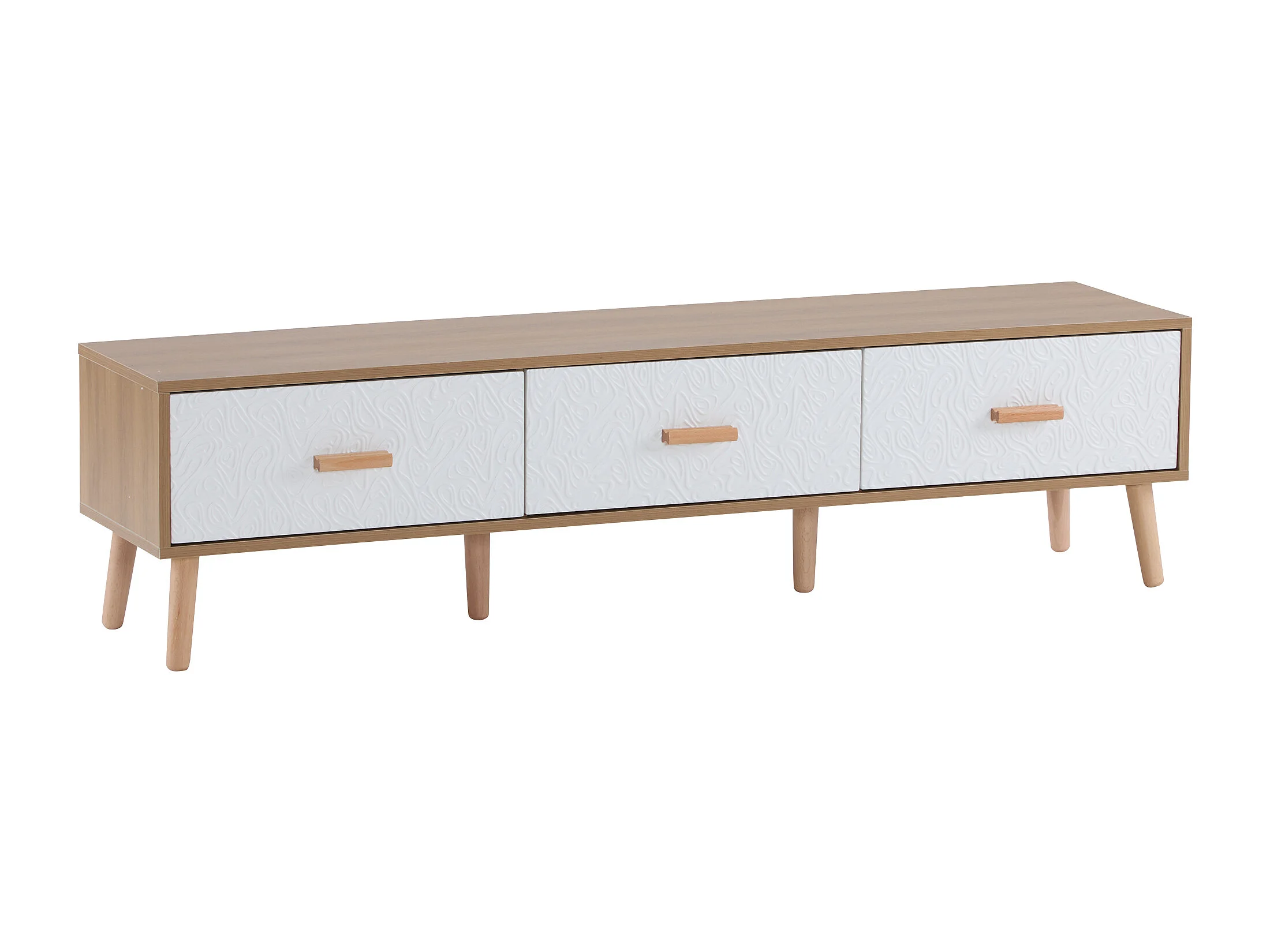 TV-meubel met 3 lades - Gestructureerd wit deurpaneel - Natuurlijke kleur 150x35x39cm