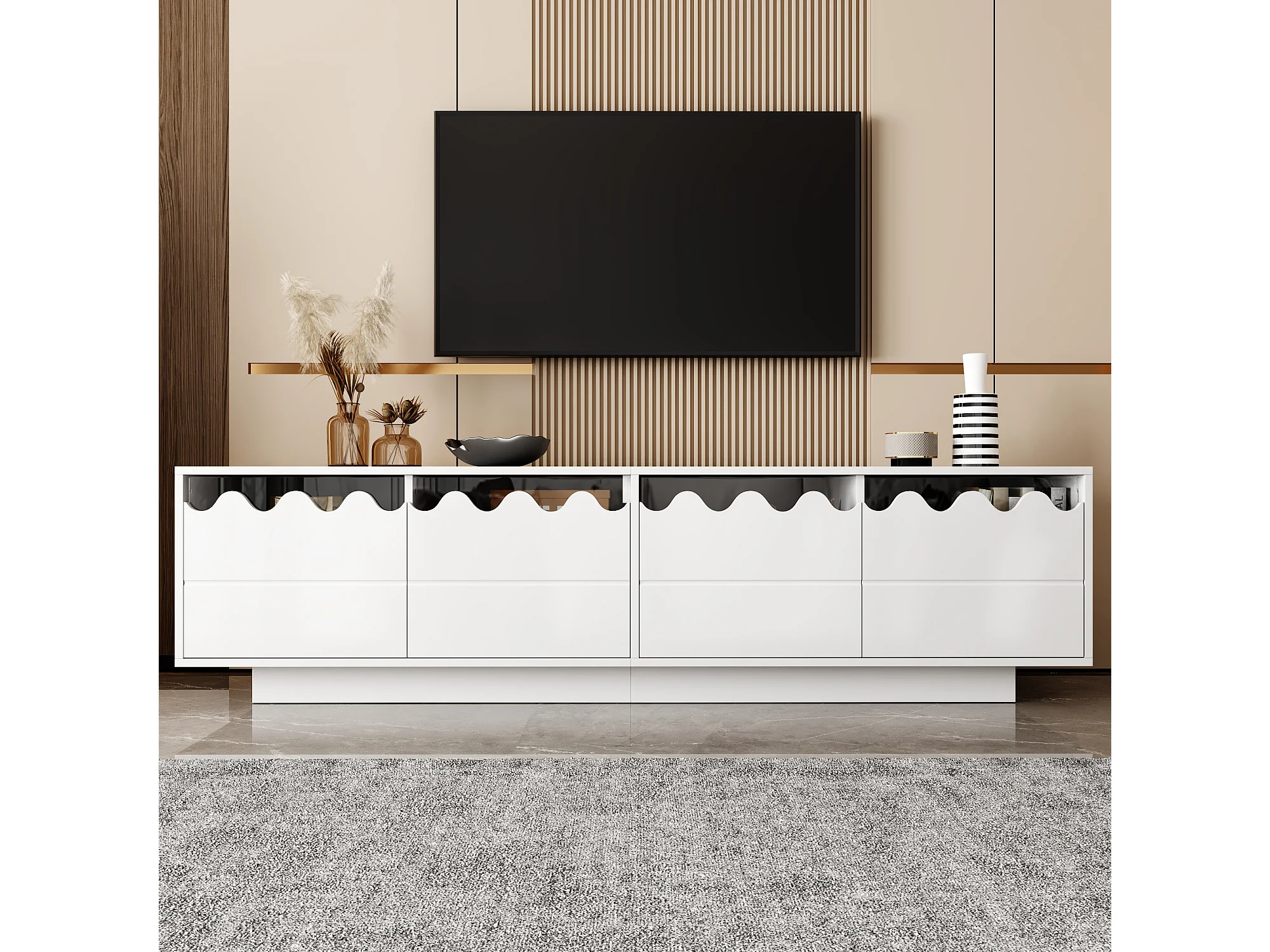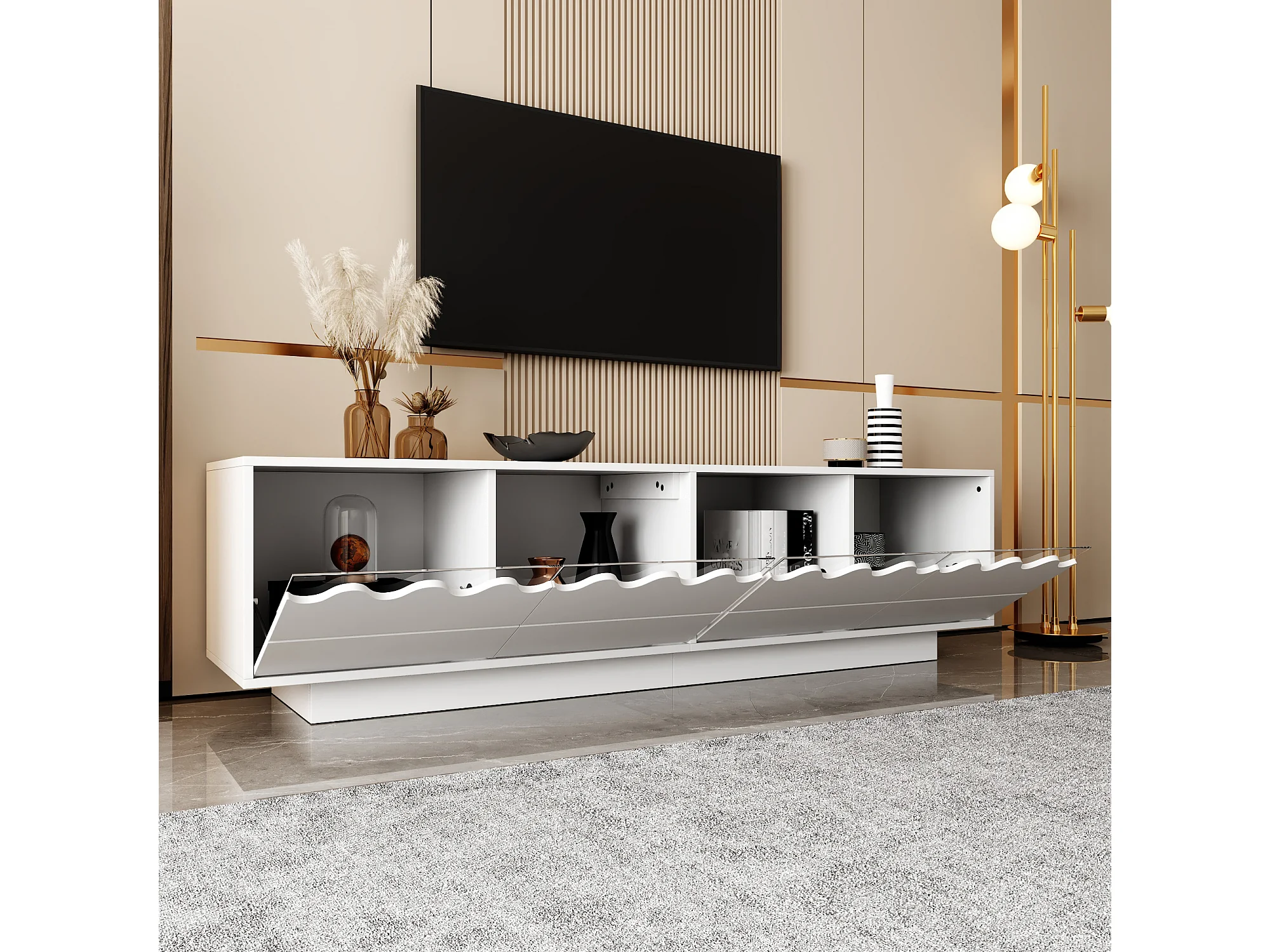 TV-meubel met 4 deuren en golvend design - Wit 170x40x45 cm
