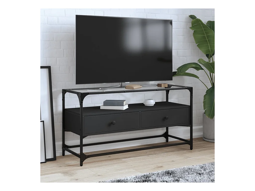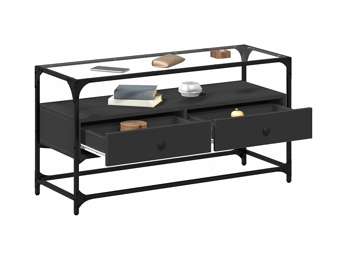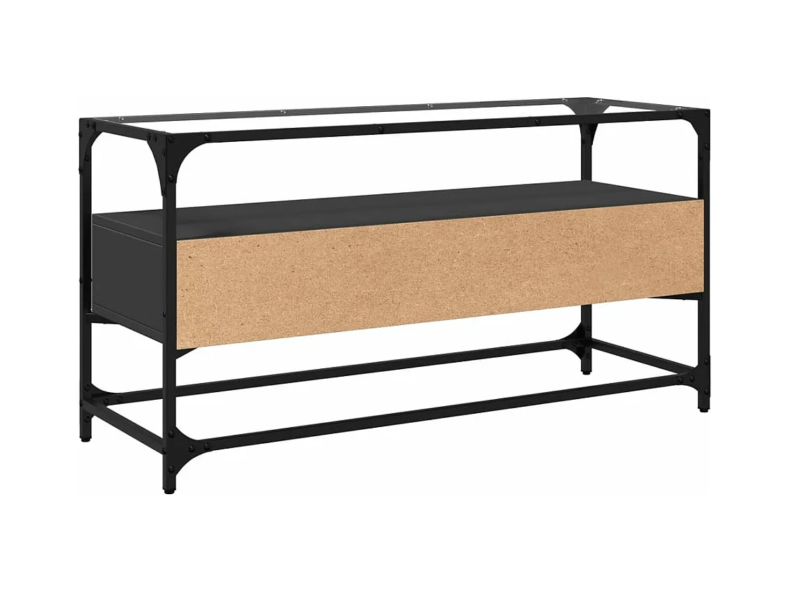 Tv-meubel met glazen blad 98x35x51 cm bewerkt hout zwart