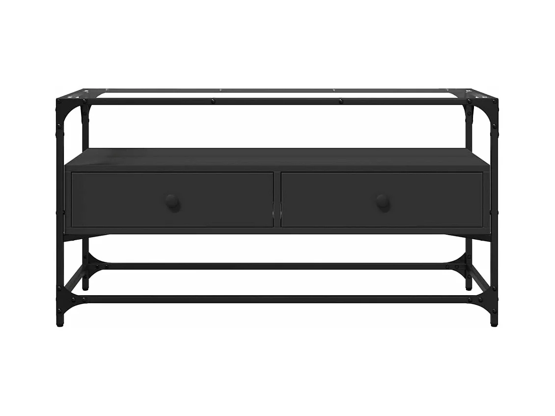 Tv-meubel met glazen blad 80x35x51 cm bewerkt hout zwart