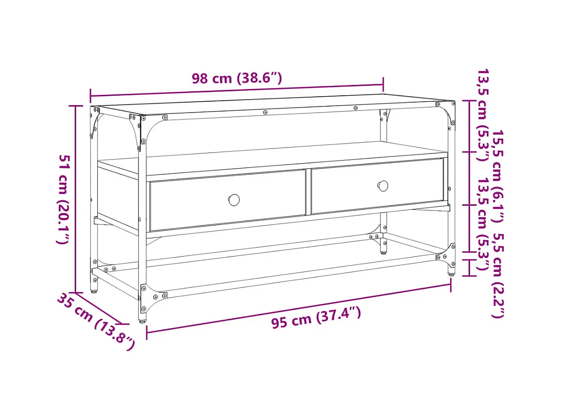 Tv-meubel 91x40x46 cm bewerkt hout en metaal zwart