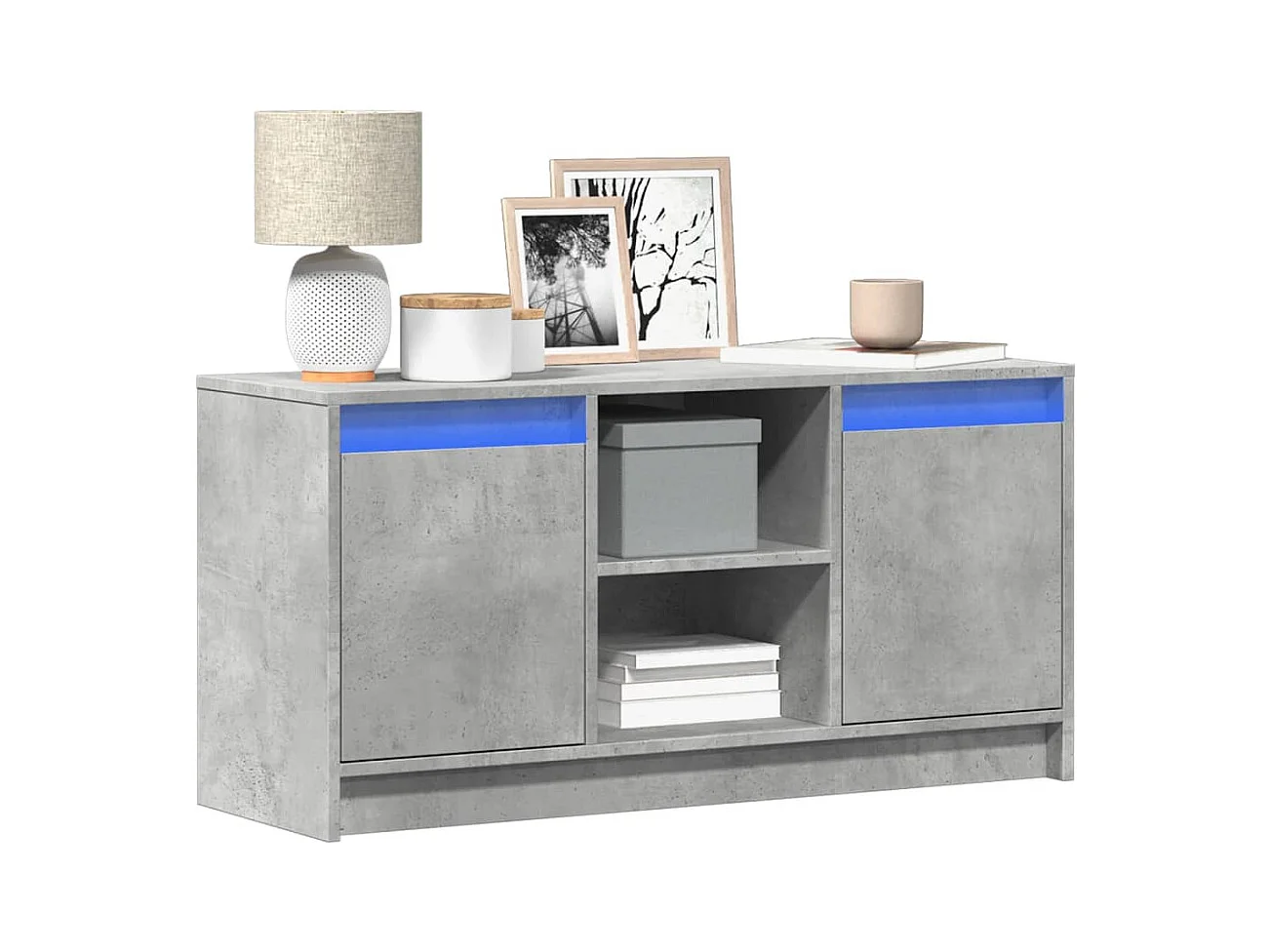 Tv-meubel met LED 100x34x50 cm bewerkt hout betongrijs
