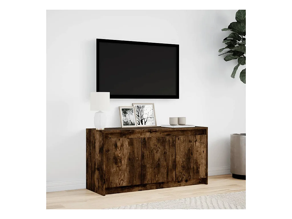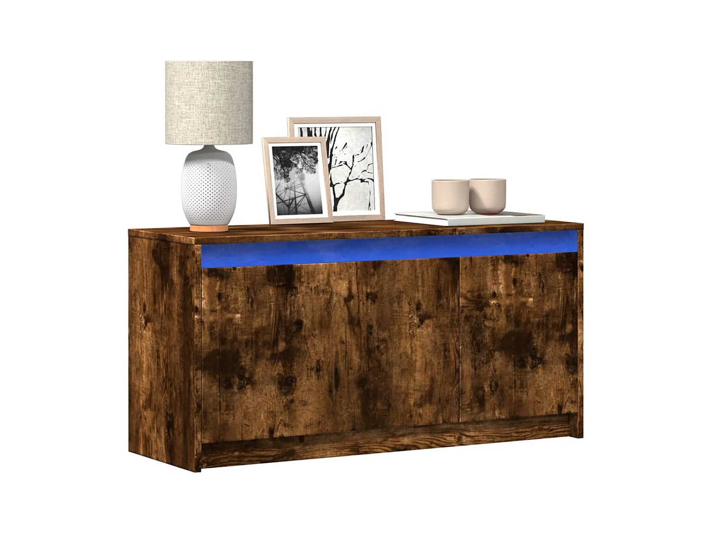 Tv-meubel met LED 100x34x50 cm bewerkt hout gerookt eikenkleur