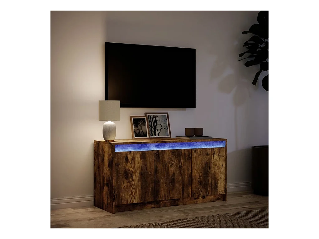 Tv-meubel met LED 140x34x50 cm bewerkt hout gerookt eikenkleur