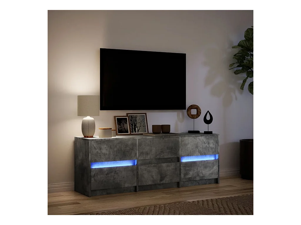 Tv-meubel met LED 140x34x50 cm bewerkt hout betongrijs