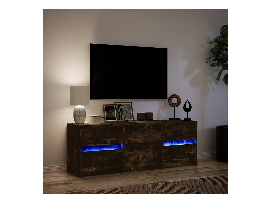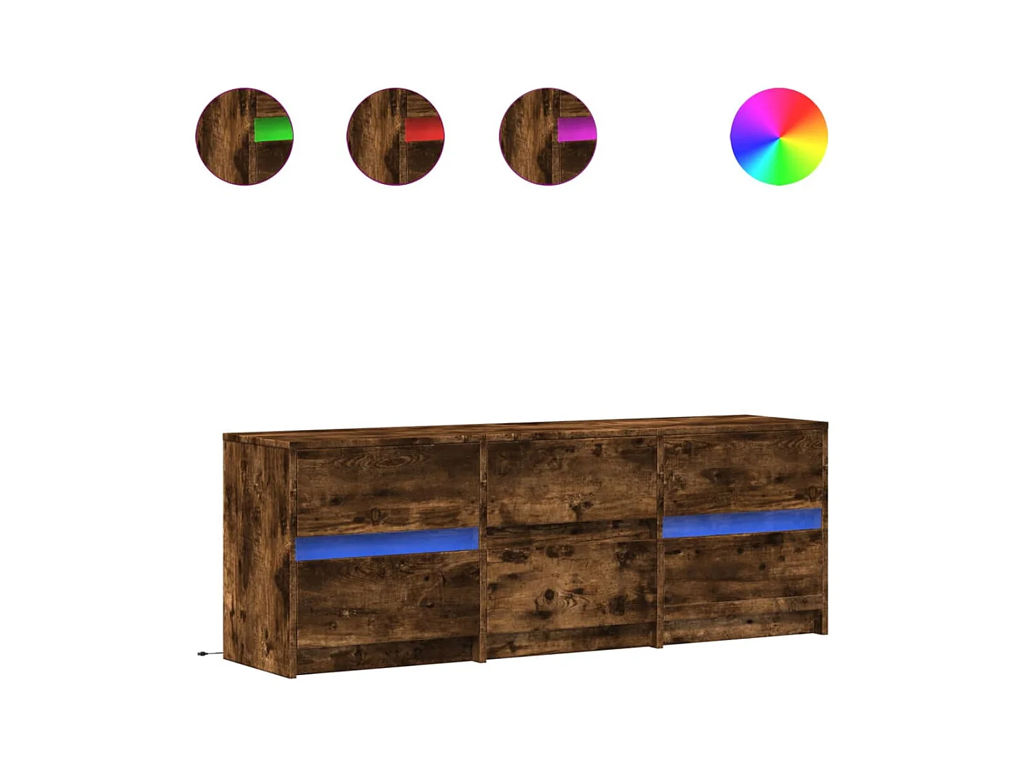 Tv-meubel met LED 140x34x50 cm bewerkt hout gerookt eikenkleur